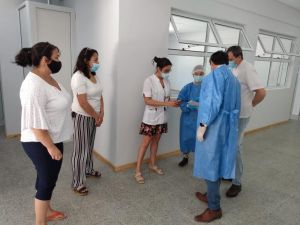 El Ministro de Salud y Ambiente Claudio García junto a su equipo de trabajo visitaron el Puesto Sanitario de Tres Cerros, punto de asistencia a toda la zona y principalmente a la accidentología vial en ruta donde actualmente y debido a la época transita un mayor número de vehículos.