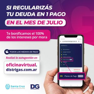 La empresa estatal informa a usuarixs que por el mes de julio se bonificará el 100 % de intereses por mora a quienes regularicen deudas en un pago.