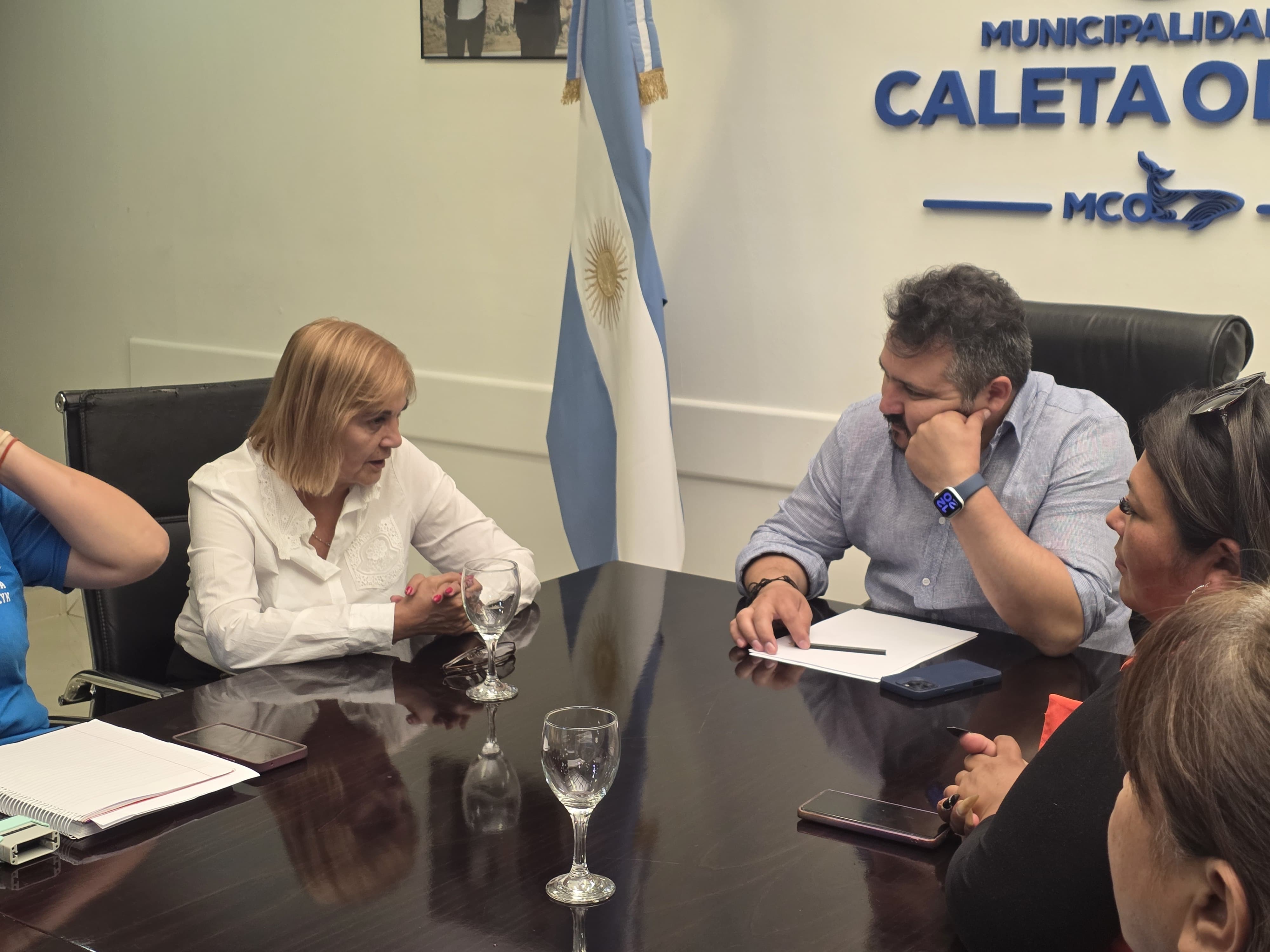 En este contexto, se llevó adelante una reunión de trabajo con el intendente de Caleta Olivia, Pablo Carrizo, junto a la Secretaria de Desarrollo Social del municipio, Priscila Jwanczyc, equipos técnicos de los Centros Integradores Comunitarios (CIC) municipales y autoridades provinciales, con el objetivo de seguir profundizando la articulación territorial que se viene desarrollando de manera sostenida.