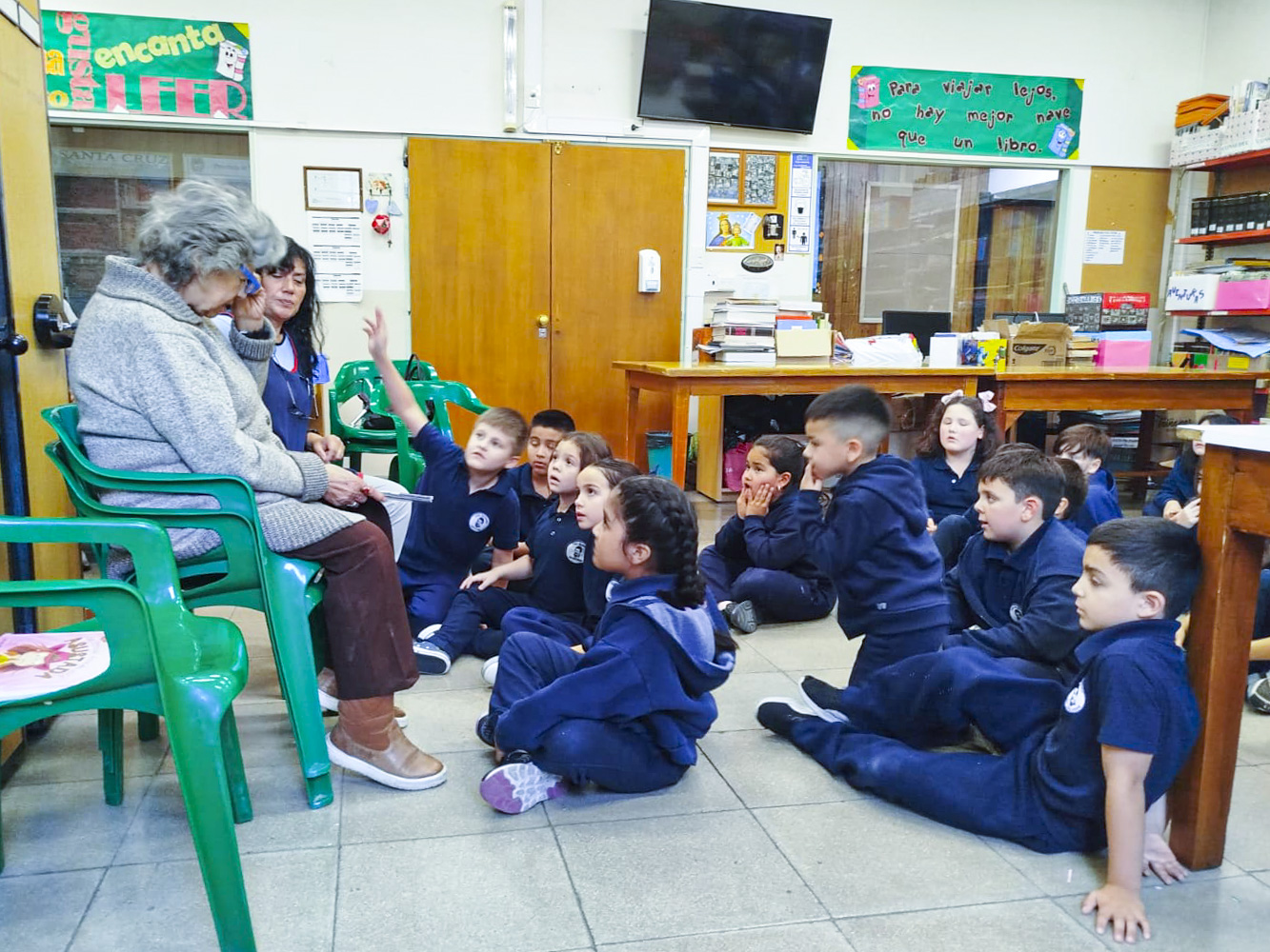 Es a partir de este encuentro que Verónica la invitó a conocer la biblioteca del colegio y le propuso sumarse a una actividad muy especial: el grupo de “Abuelos cuentacuentos”. Es a partir de esta invitación que Carmen se acerca a leerle cuentos a los estudiantes de nivel inicial y primaria; generándose un clima de entusiasmo y cariño.