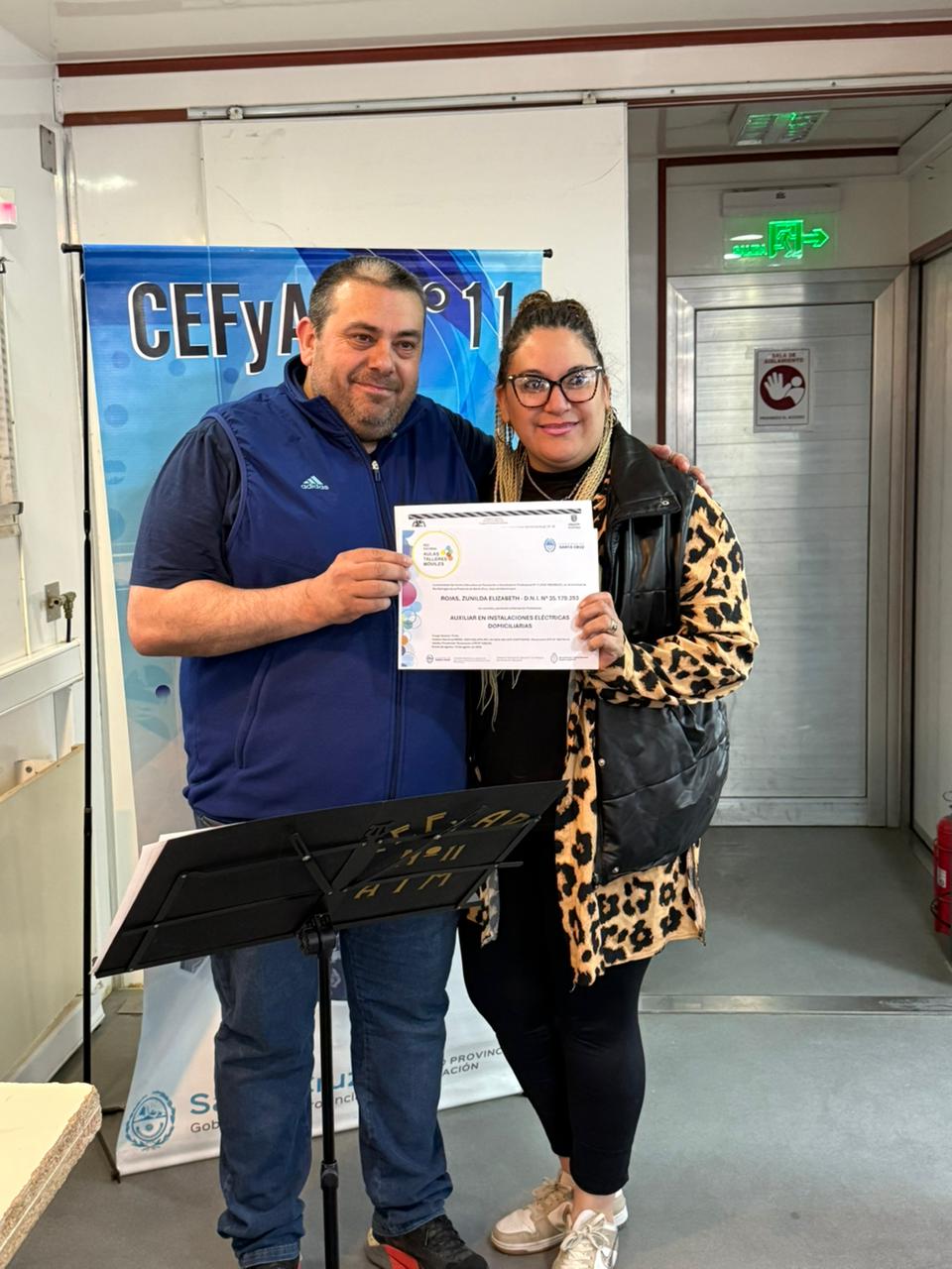Esta semana, en el Centro Educativo de Formación y Actualización Laboral (CEFyAP) N°11, se realizó la entrega de certificados a los egresados de la 24.ª y 25.ª promoción de Auxiliar en Instalaciones Eléctricas Domiciliarias, y de la 2.ª promoción de Diseño Digital y Publicidad en Redes Sociales, destacando el esfuerzo y la dedicación de los jóvenes durante su proceso formativo.