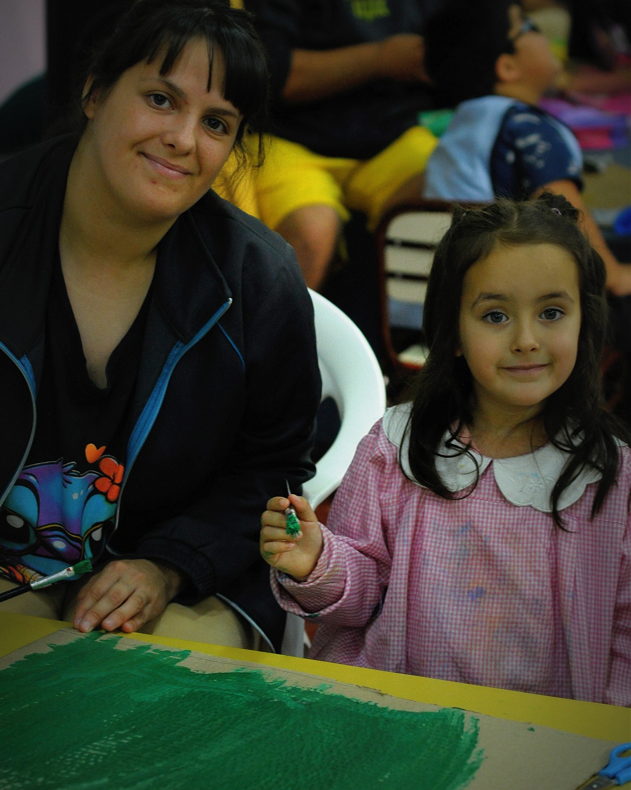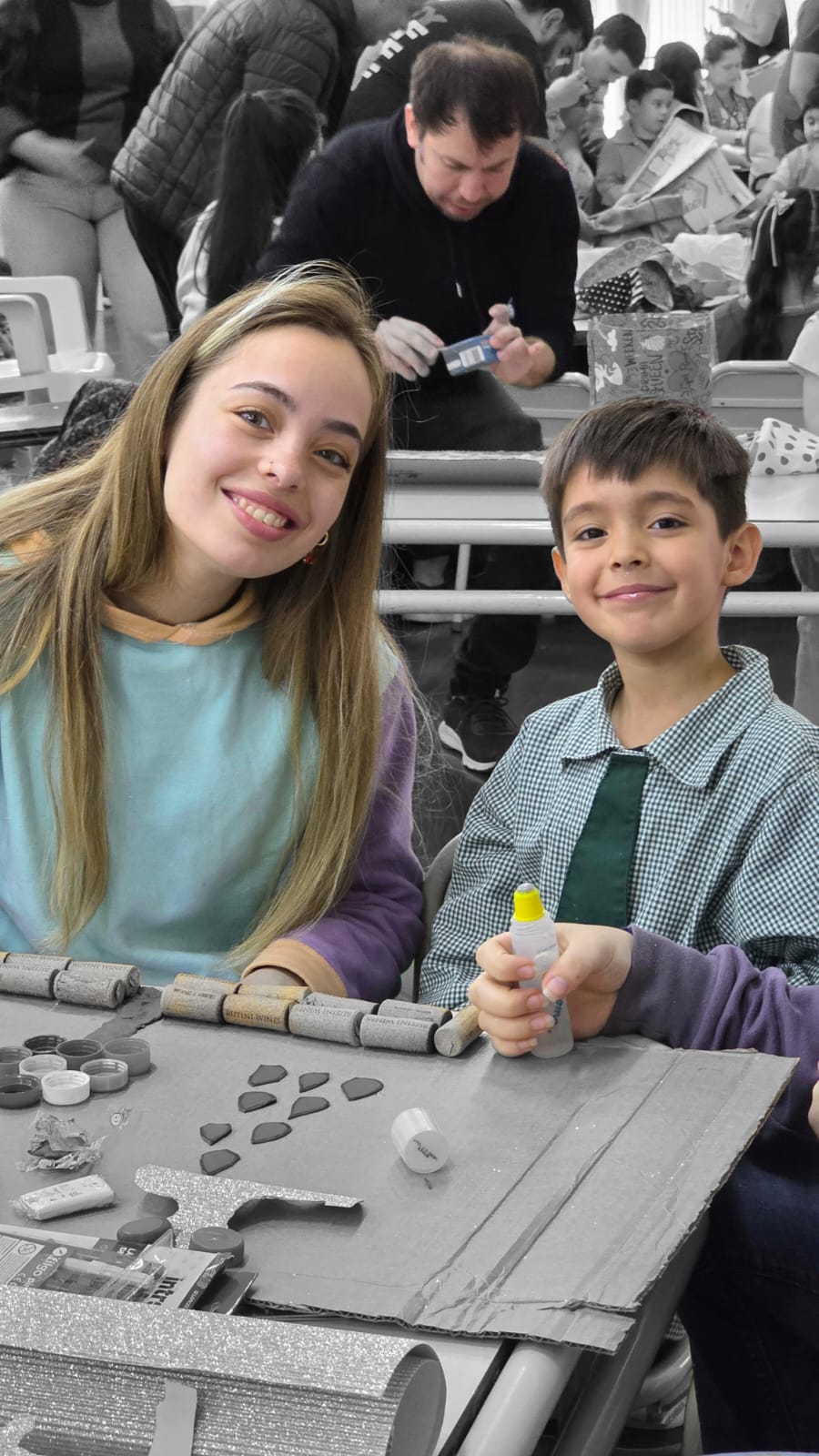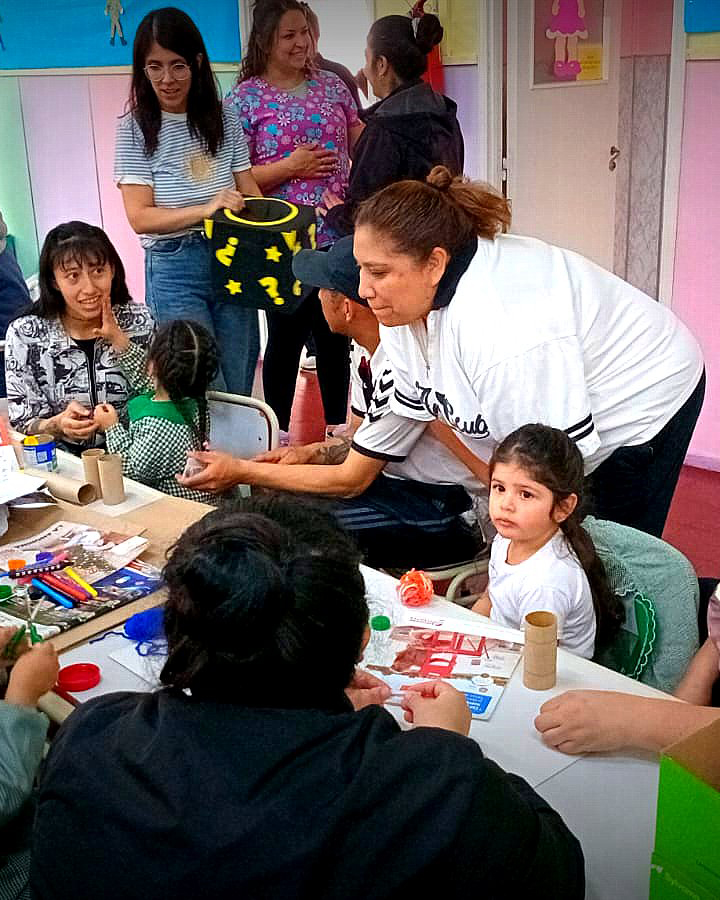 A partir de esta propuesta, se desarrolló una actividad de expresión artística compartida, donde niños y niñas junto a sus familias crearon producciones en técnica de collage bajo la consigna “Creamos para cuidar el planeta”. La utilización de materiales reciclados permitió reflexionar sobre prácticas sostenibles, al tiempo que se promovió la creatividad, la expresión de ideas y emociones, y el intercambio intergeneracional.