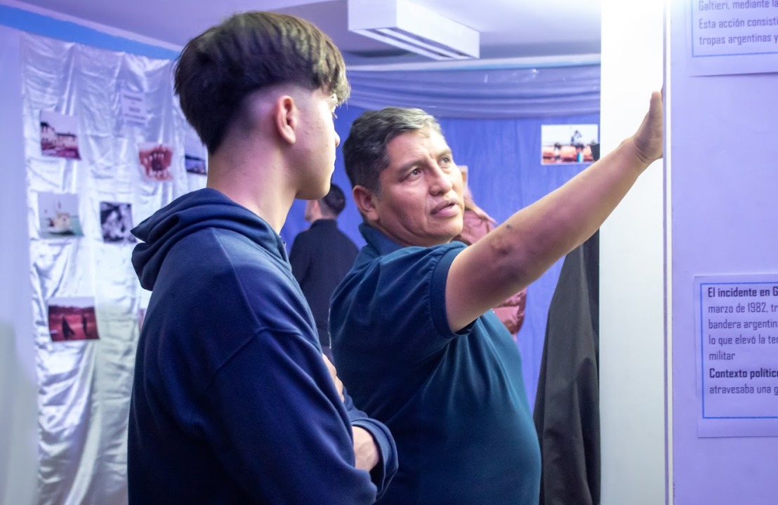 Sobre la propuesta, Viberos explicó que la muestra se construyó a partir de un archivo fotográfico aportado por Hernán Pinuer, aficionado y coleccionista de imágenes de Malvinas, quien facilitó alrededor de 400 fotografías vinculadas al conflicto. En ese sentido, detalló que se realizó una selección de aproximadamente 100 imágenes, organizadas de manera cronológica, con el objetivo de facilitar la comprensión del desarrollo histórico de los acontecimientos por parte de los estudiantes.