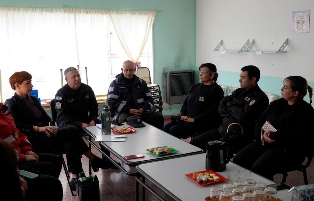 La jornada estuvo encabezada por la supervisora María Elena Tapia y contó con la participación de la coordinadora pedagógica de Zona Norte, Mariela Pescara; Cristina Castañino; y el secretario técnico de la Dirección General de Educación Especial, Pablo Ifrán, junto a representantes de la Policía de Santa Cruz y de Bomberos, quienes acompañaron la propuesta y destacaron la importancia de contar con herramientas institucionales para el abordaje de situaciones emergentes.