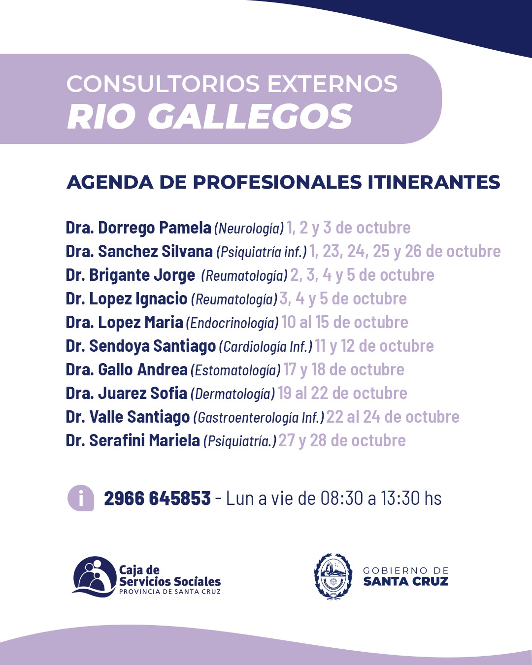 Lugar de atención: Consultorios Externos CSS – Hospital Regional Río Gallegos