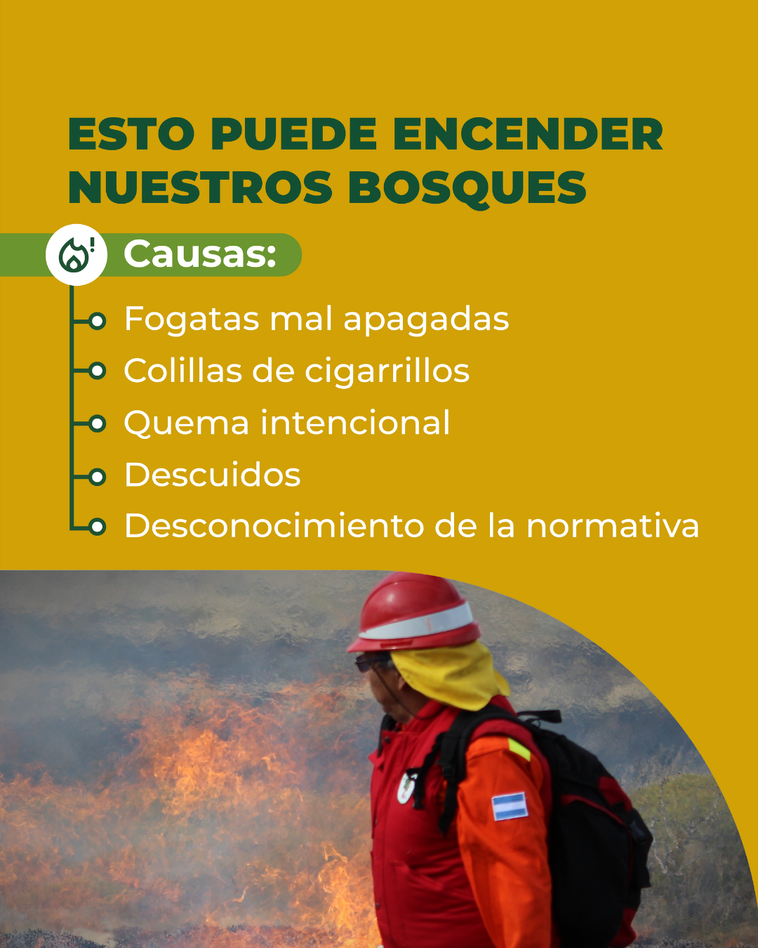 Del 1° de septiembre al 30 de abril, comienza la temporada de mayor riesgo de incendios. Durante este período, el uso del fuego queda prohibido en todo el territorio provincial, excepto en los casos autorizados previamente por el CAP.