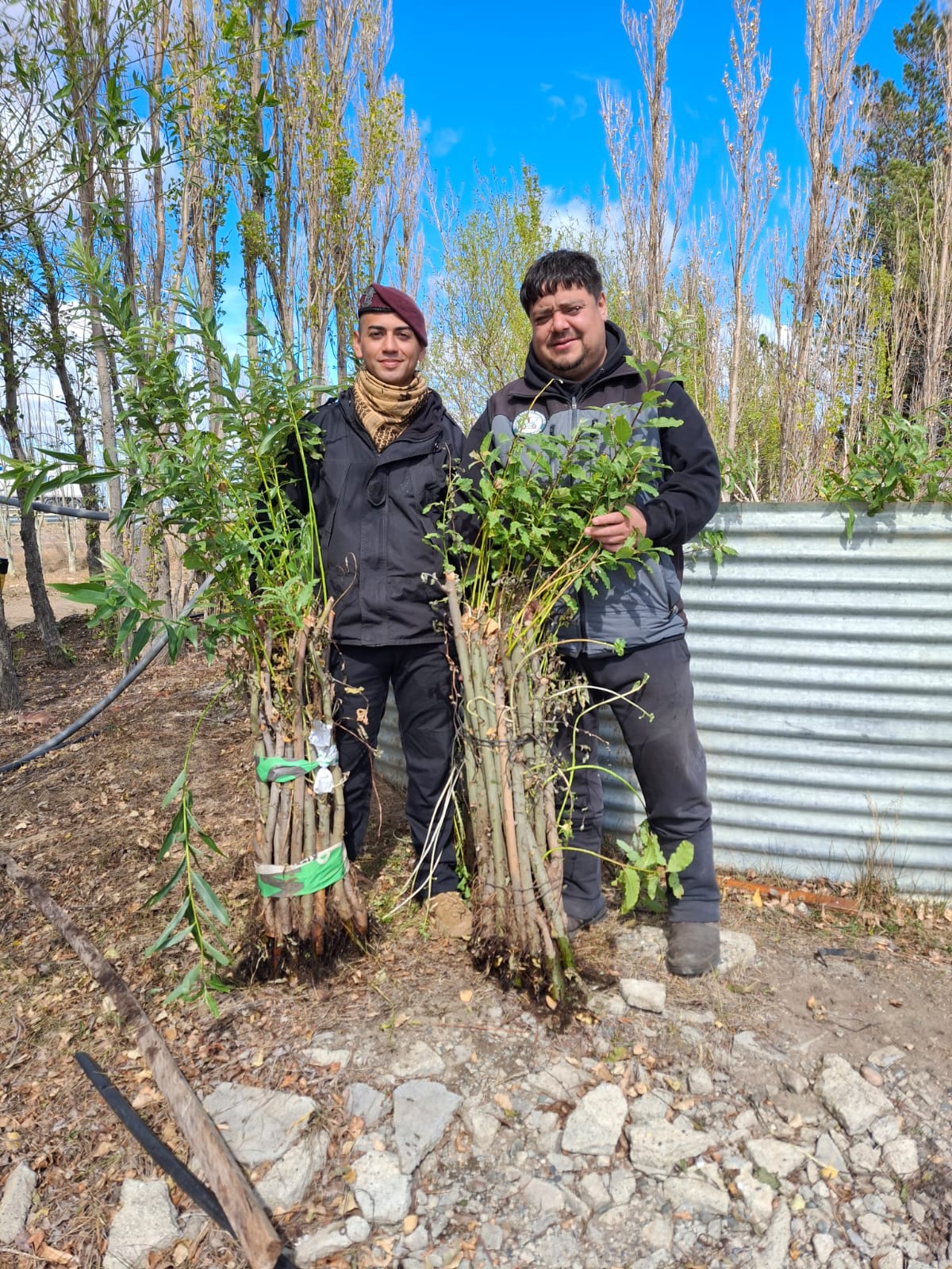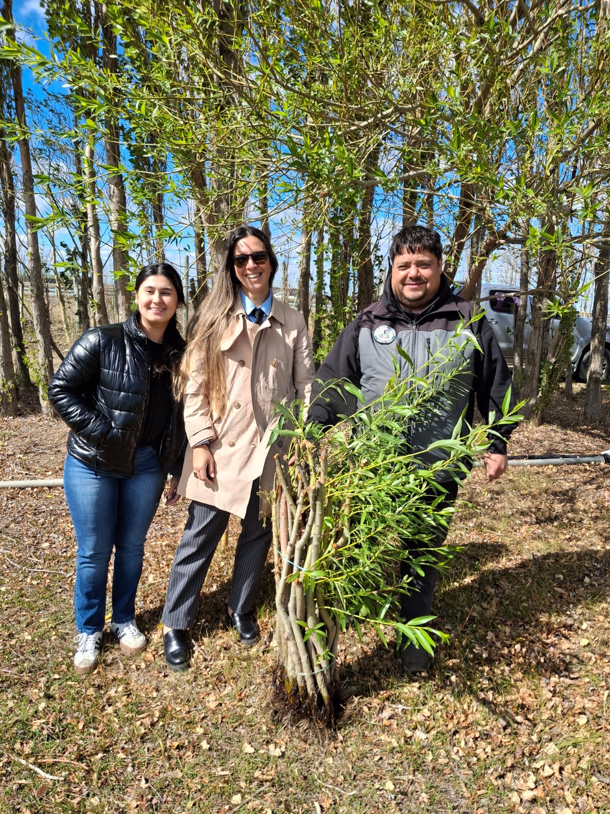 En esta oportunidad, se realizó la entrega de 50 sauces destinados a la conformación de una cortina cortaviento para la Dirección de Seguridad y Traslado, con el objetivo de mejorar las condiciones ambientales del predio y aportar protección frente a las condiciones climáticas de la región.
