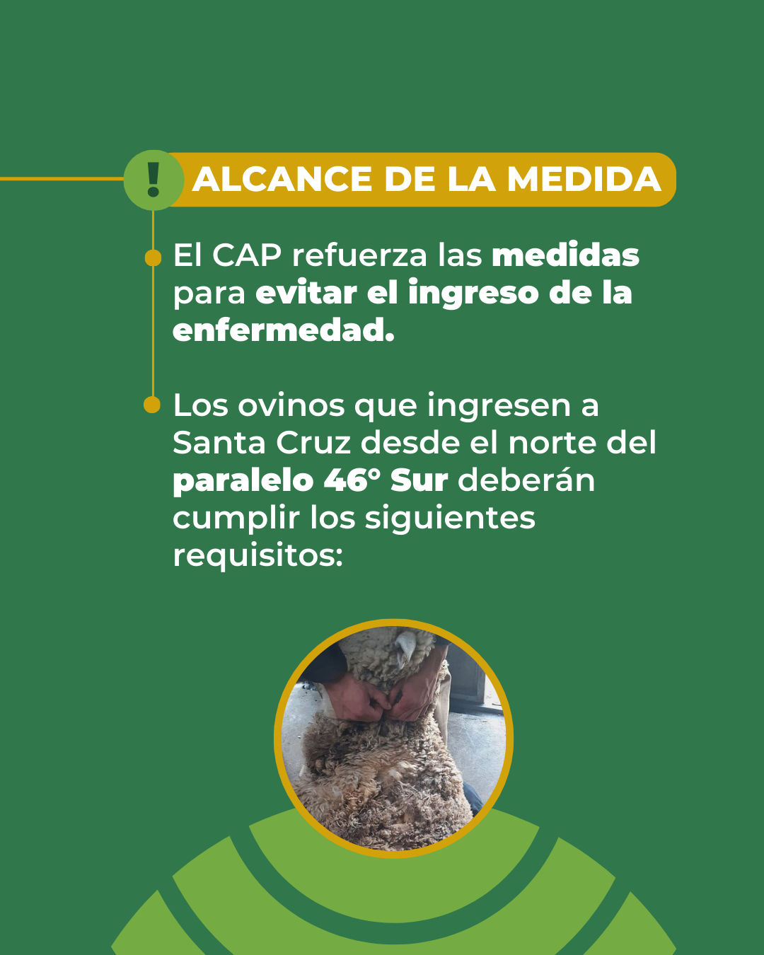 Se dispuso la declaración del Estado de Prevención de Sarna Ovina en todo el territorio provincial, con el objetivo de proteger el estatus sanitario de Santa Cruz, que se mantiene libre de la enfermedad desde noviembre de 2023. La sarna ovina es una parasitosis que impacta de manera directa en la producción ganadera, por lo que la prevención resulta una herramienta central para sostener la actividad.