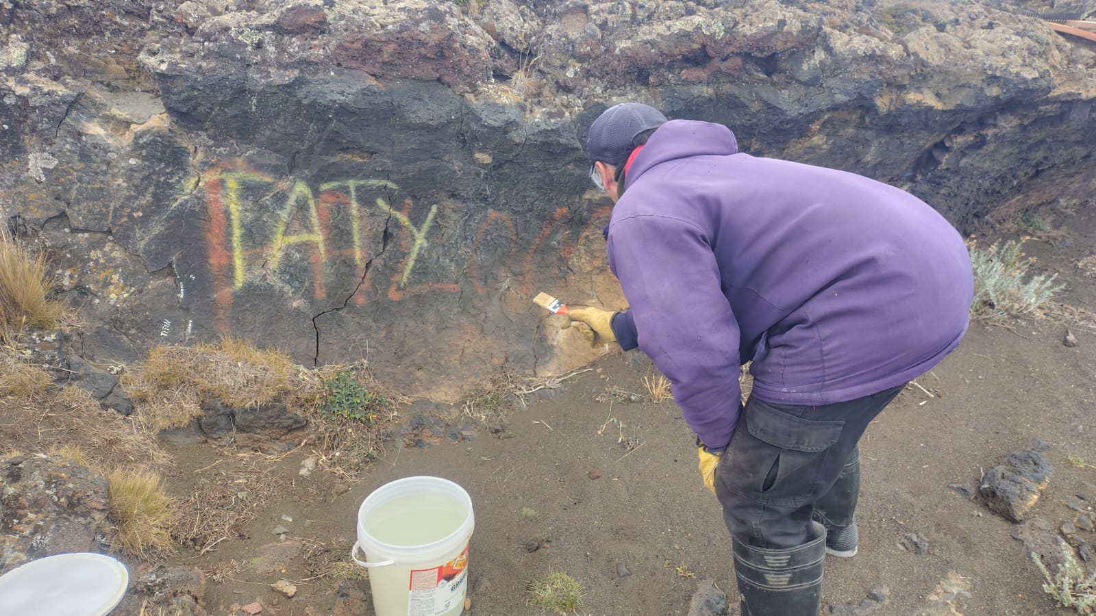 Además, se retiraron grafitis de las piedras volcánicas del cráter, una acción clave para recuperar la imagen original del lugar y preservar un paisaje que forma parte de la identidad santacruceña.