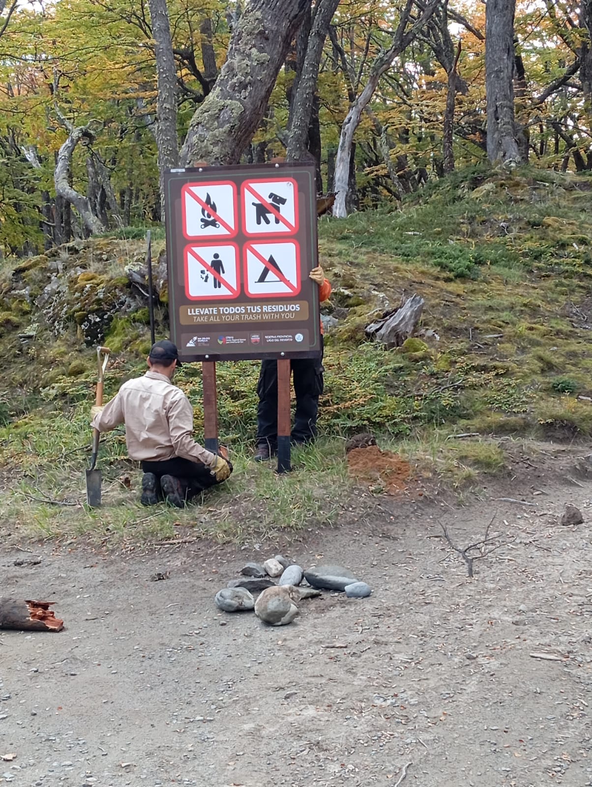 El trabajo se lleva adelante a partir de un proyecto conjunto entre la Delegación El Chaltén del CAP, el Parque Nacional Los Glaciares (Zona Norte) y la Asociación Amigos del Parque Nacional Los Glaciares, que brindó apoyo en el financiamiento y el diseño de la cartelería.