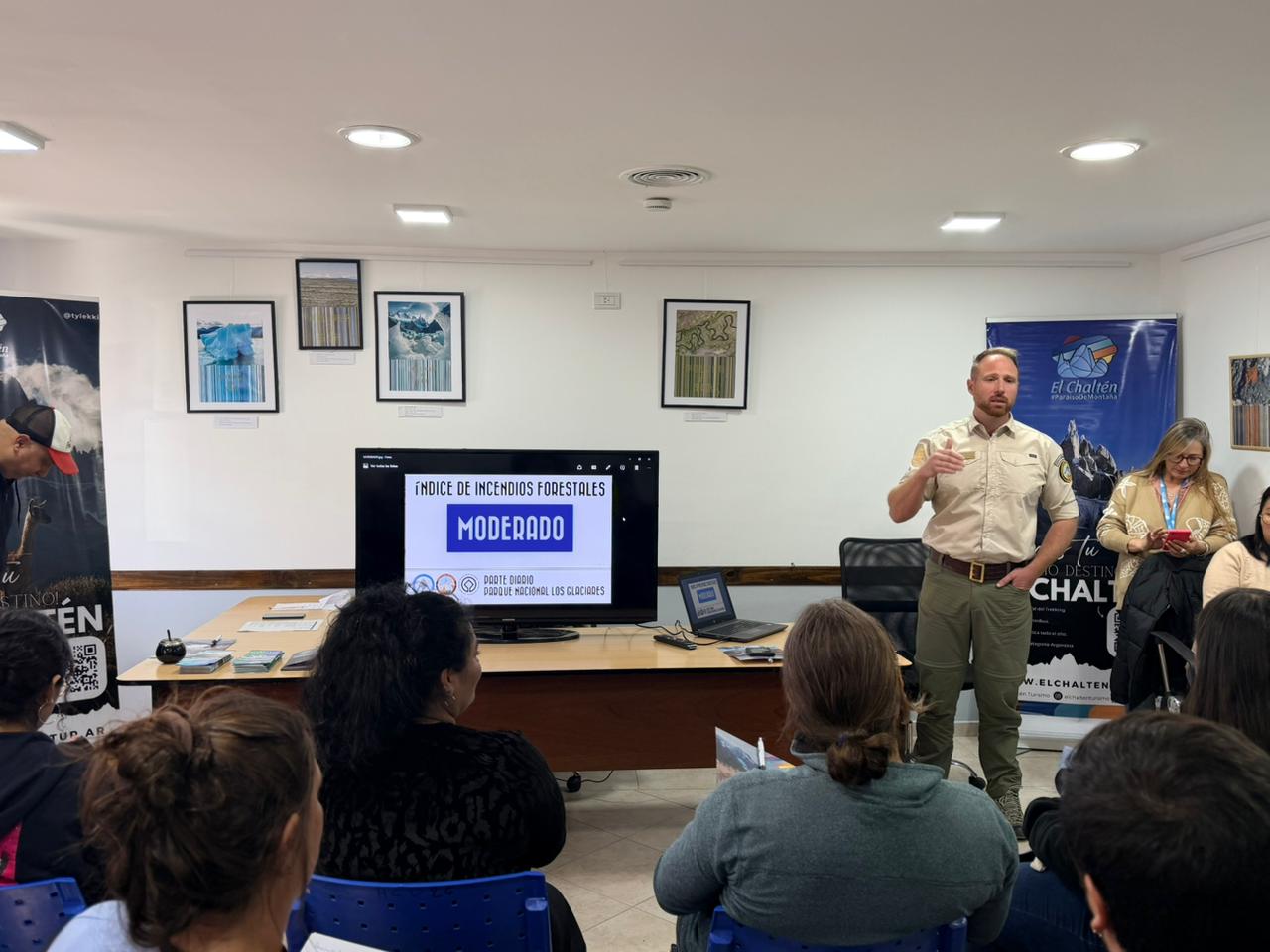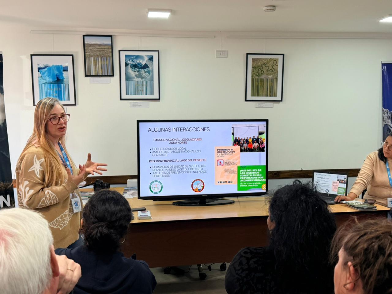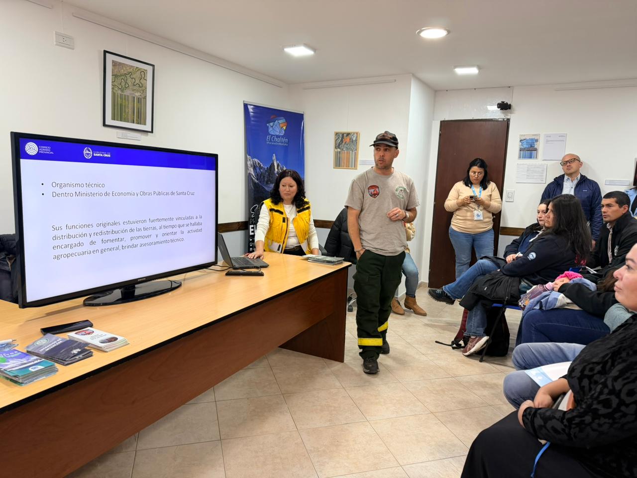 En este espacio, los agentes Diego Fernández y Alejandra Berardi expusieron sobre las incumbencias del organismo, su jurisdicción y el trabajo territorial en la zona, con énfasis en la Reserva Provincial Lago del Desierto y las acciones de prevención de incendios forestales.