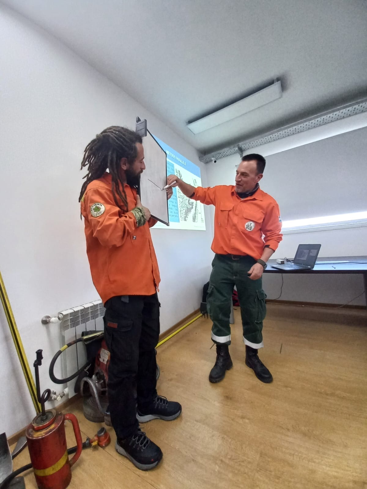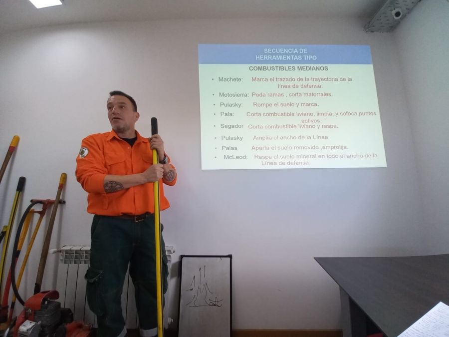 La capacitación está a cargo del instructor Cristian Cecin Huiteleg, junto a los ayudantes Pablo Irazocchi y Mauro Chaile, y está destinada a personal del CAP, bomberos de la Policía y civiles.