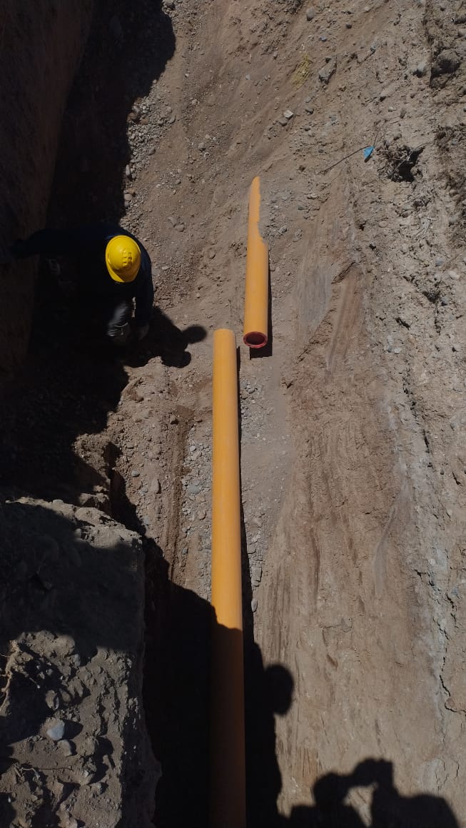 En el sector denominado Sección 8 Zona Sur se concretó el primero de estos cruces sobre las rutas provinciales n°43 y n°12, con la instalación de cañería de 180 milímetros de diámetro. La obra contempla en total la ejecución de 1.470 metros de cañería de 180 mm y 175 metros de 250 mm, con una planificación pensada en función del crecimiento urbano del sector.