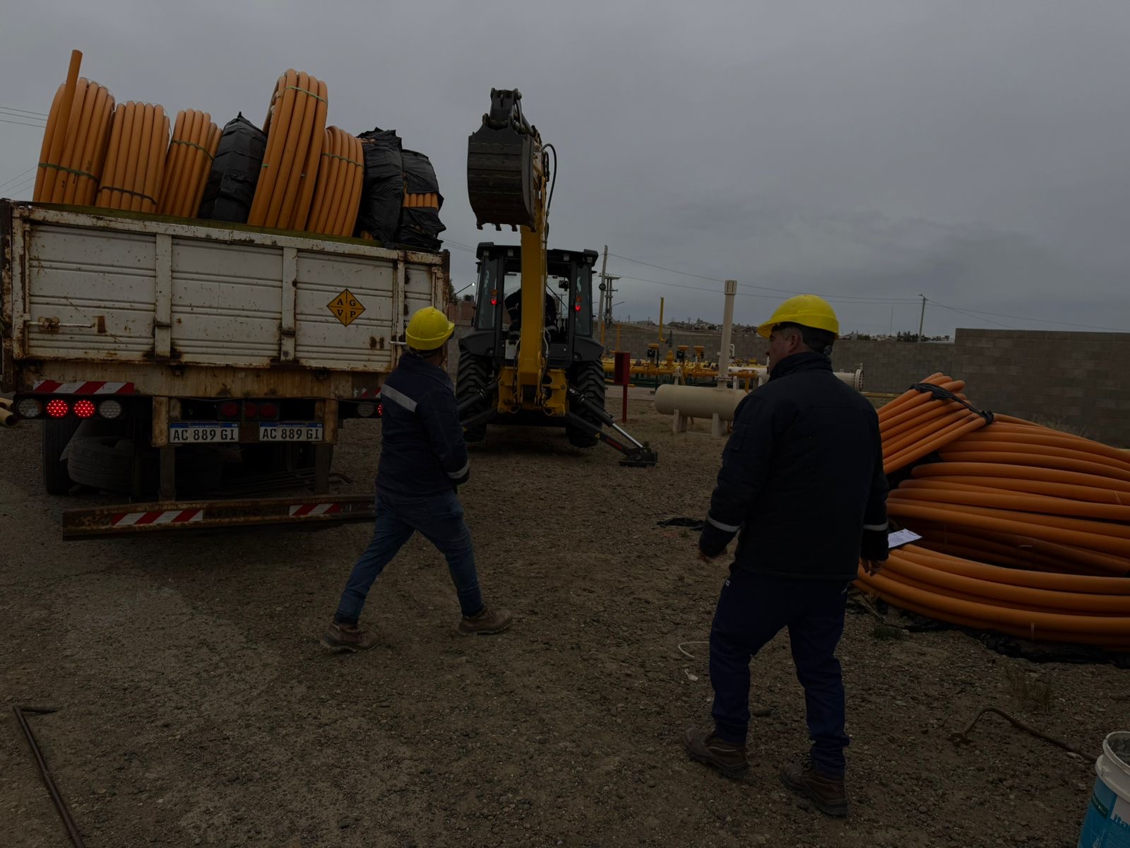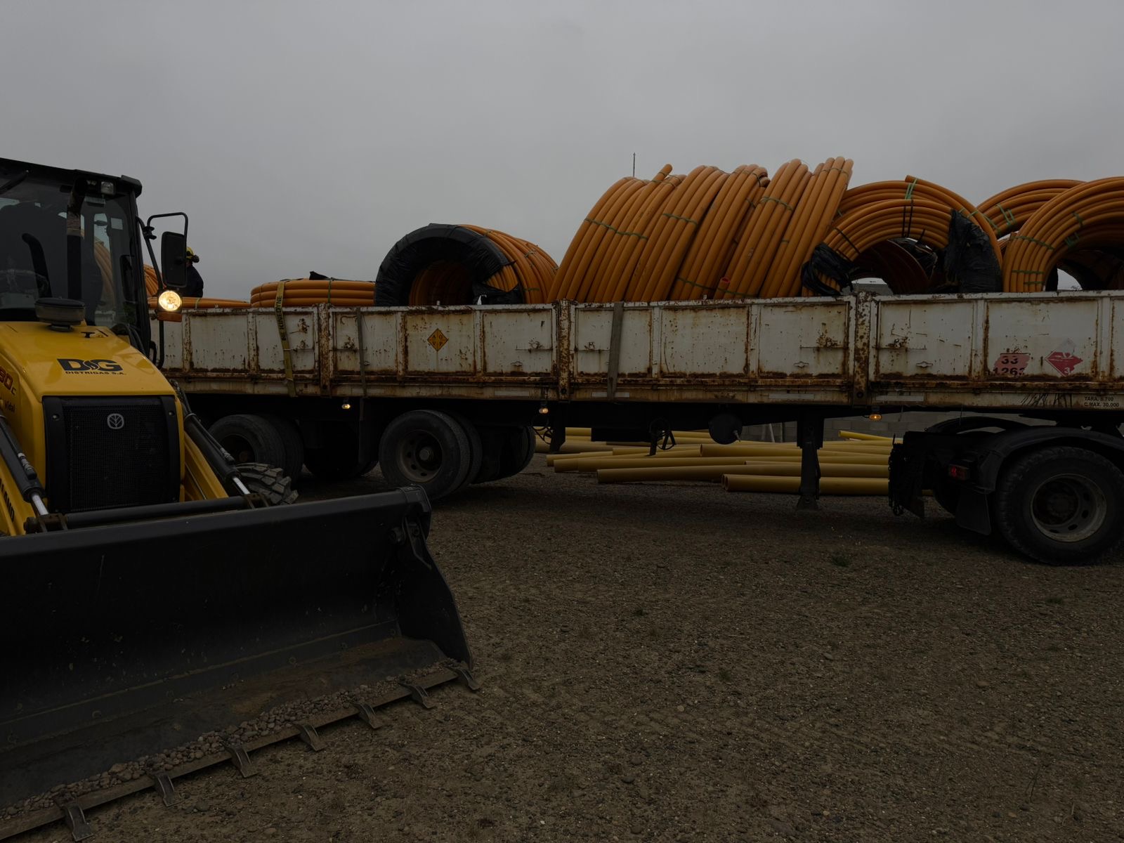 Durante la descarga de los insumos, el gerente de Distrigas S.A. en Caleta Olivia, Ramón Herrera, supervisó el operativo logístico previo al inicio de los trabajos. En ese marco, destacó: “Estamos cumpliendo con una demanda histórica. La llegada de estos materiales es el paso fundamental para que en los próximos días las máquinas ya estén trabajando en el terreno”.