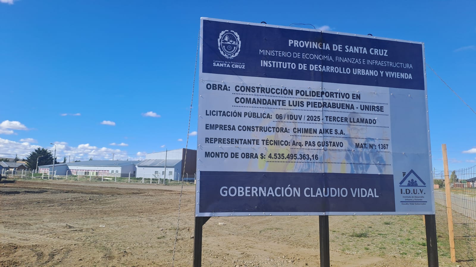 El Gobierno de Santa Cruz, encabezado por Claudio Vidal, avanza con una fuerte política de inversión en infraestructura pública a través del Instituto de Desarrollo Urbano y Vivienda (IDUV), con la construcción del nuevo polideportivo en Comandante Luis Piedra Buena, una obra estratégica que demandará una inversión de $4.535.495.363,16.