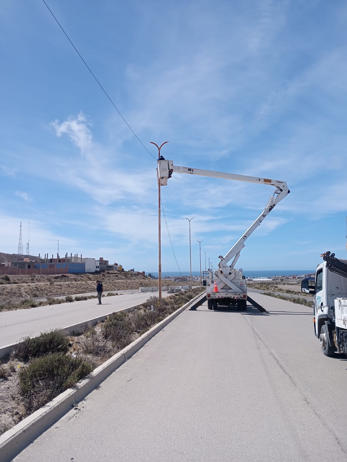 La Municipalidad de Caleta Olivia aportó la luminaria y cables para realizar el tendido eléctrico necesario para realizar la obra. Esta iniciativa demuestra el compromiso entre la empresa provincial y el municipio para mejorar la infraestructura y la calidad de vida de los vecinos.