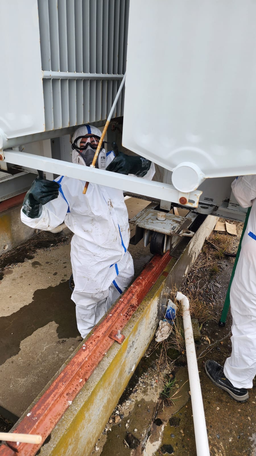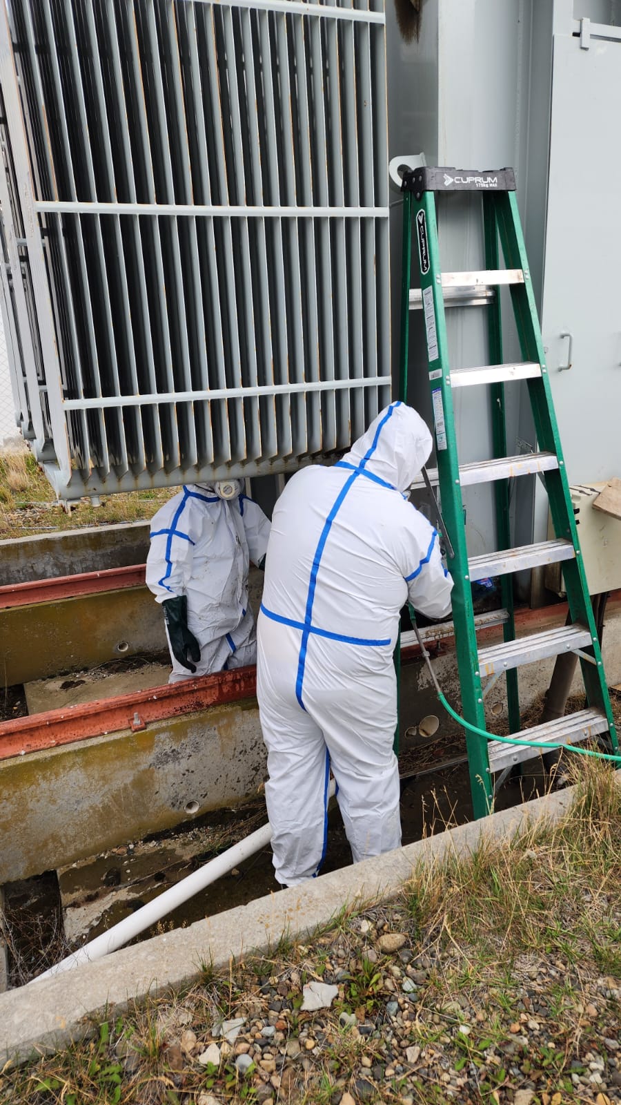 En paralelo, en la ciudad de Río Gallegos, personal de la Gerencia de Generación se encuentra llevando a cabo tareas de mantenimiento general en el transformador elevador TR 2 de la central termoeléctrica, el cual forma parte del sistema de generación eléctrica.