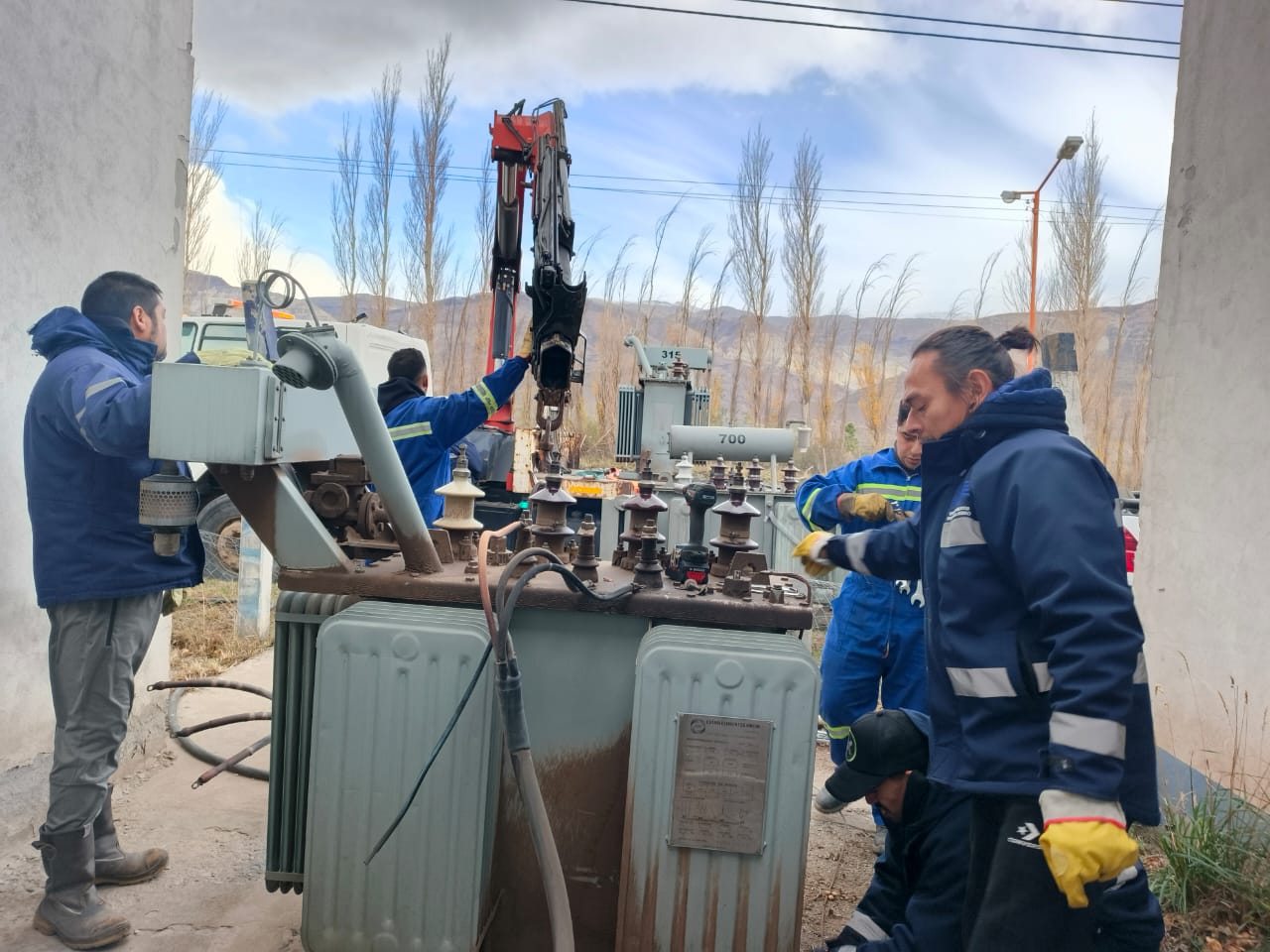 En Lago Posadas, el organismo concretó el reemplazo de un transformador elevador eléctrico para permitir tareas de mantenimiento sobre el equipo original. Para evitar interrupciones en el suministro, se instaló de forma provisoria un transformador alternativo, lo que permitió sostener la continuidad del servicio.
