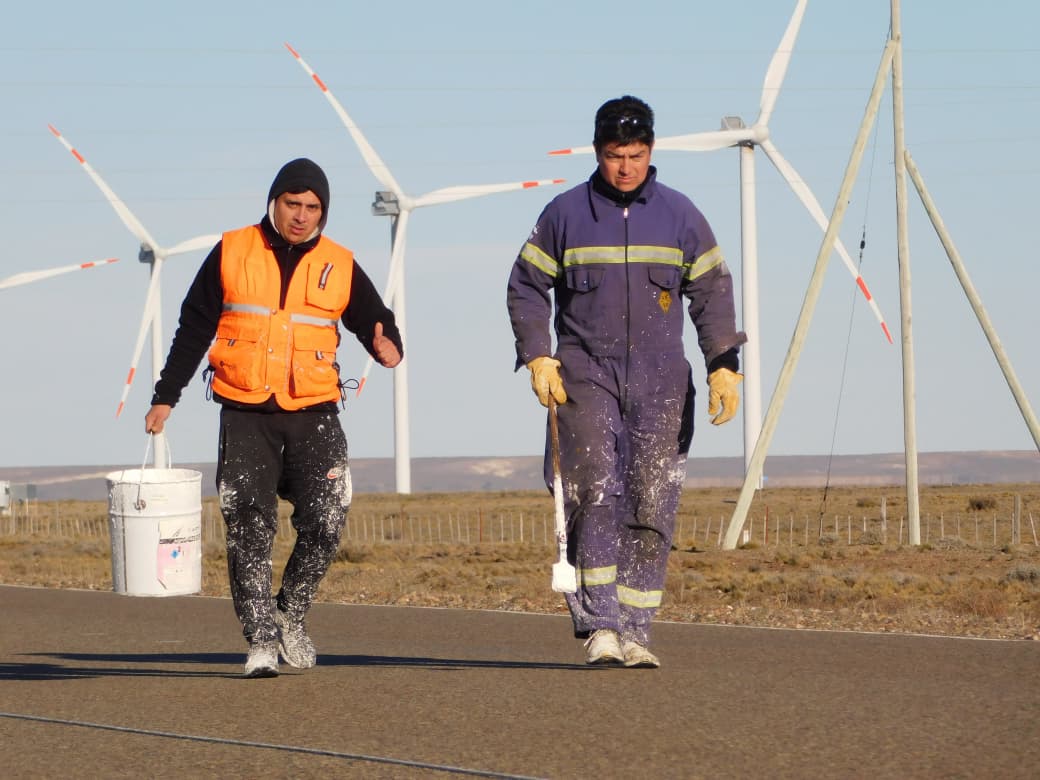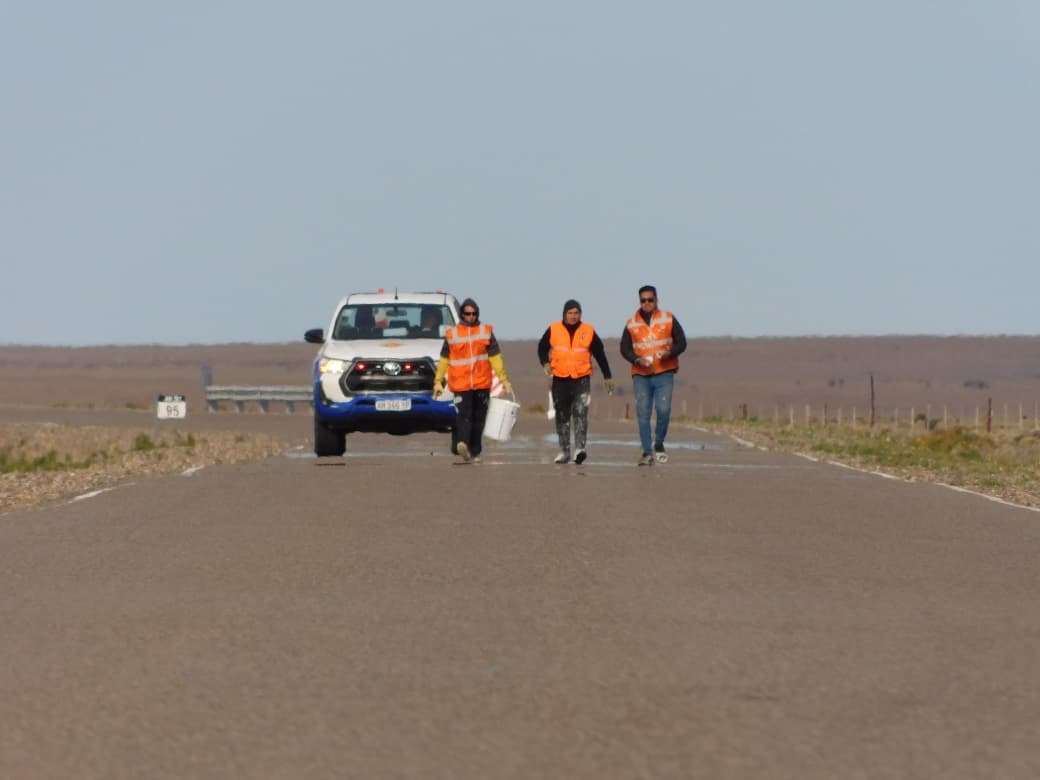 Los trabajos son ejecutados por personal del Distrito Vial Río Gallegos en coordinación con el Distrito Vial Puerto Deseado como etapa previa a la demarcación horizontal de eje y bordes laterales de la calzada.