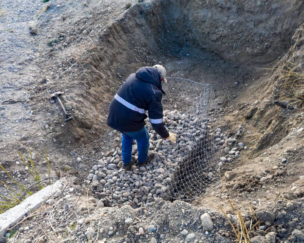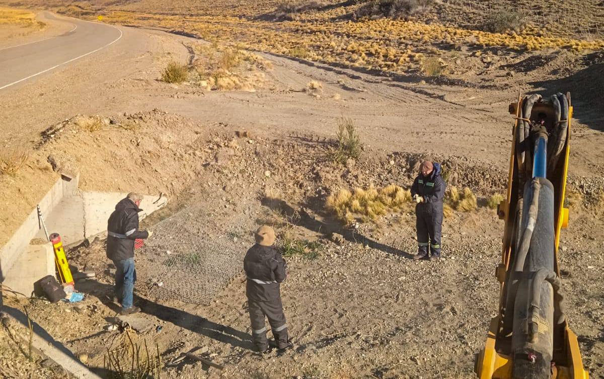 El Distrito Vial de Gobernador Gregores inició trabajos de armado y colocación de gaviones destinados a la protección de taludes en una alcantarilla ubicada sobre la Ruta Nacional N° 40 norte, a la altura de la estancia “La Flora”.