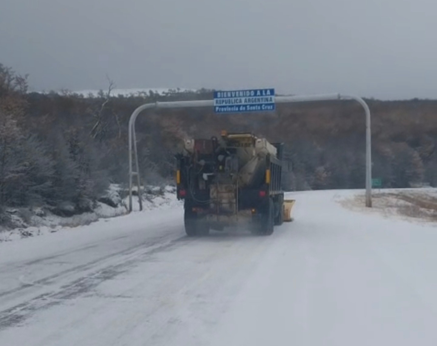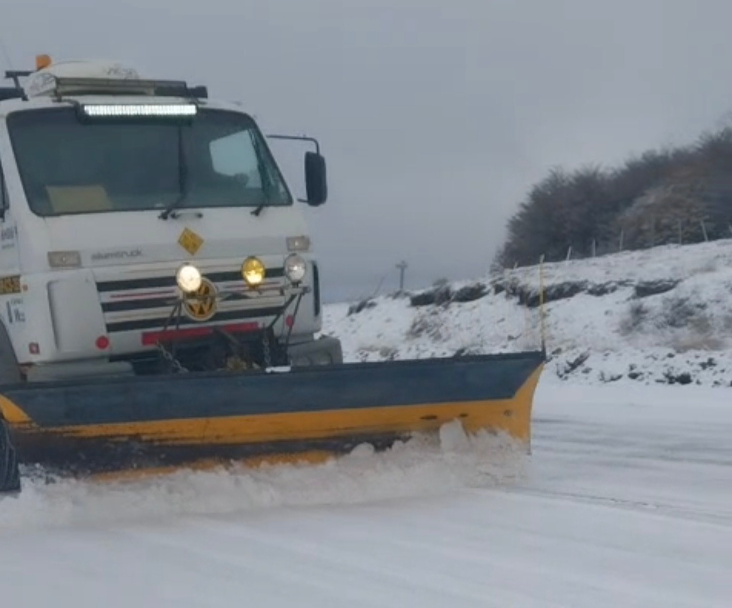 La Delegación Vial de 28 de Noviembre llevó adelante un operativo de despeje de nieve en la Ruta Complementaria N° 20, en el sector del Paso Fronterizo Mina 1, tras las condiciones invernales registradas durante la jornada.