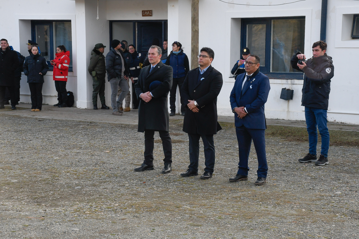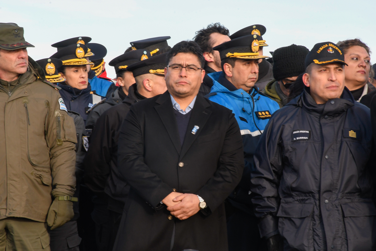 Allí estuvo presente el gobernador Claudio Vidal, junto a autoridades provinciales, diputados provinciales, intendentes y jefes comunales, concejales, efectivos de la Armada Argentina, Gendarmería Nacional, Servicio Penitenciario y la Policía provincial, acompañados de sus familiares. La banda de la Policía de Santa Cruz “14 de Noviembre” fue quien entonó las estrofas del Himno Nacional Argentino.