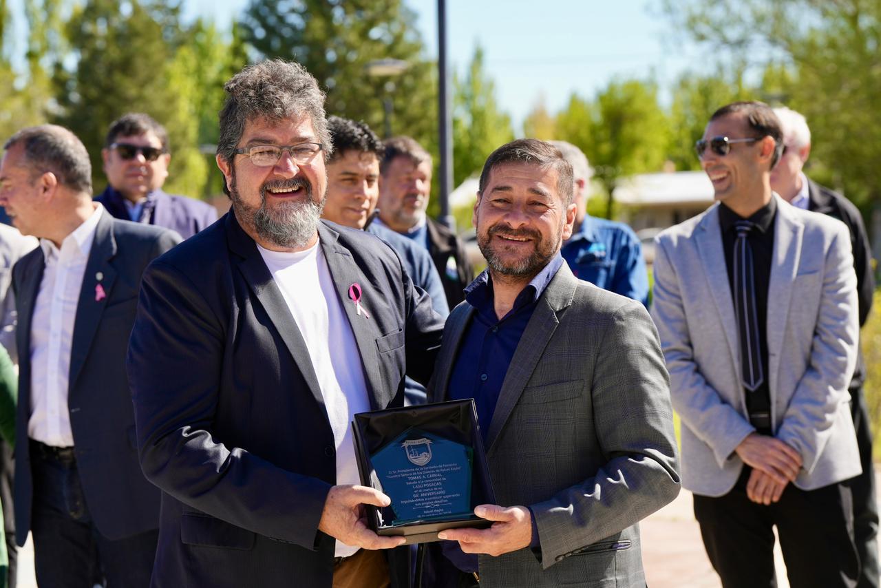 Al inicio de su alocución, el presidente de la Comisión de Fomento de Lago Posadas, Rubén Guzmán, saludó a las autoridades provinciales y locales, mencionando especialmente al gobernador Claudio Vidal, al jefe de Gabinete de Ministros, José Daniel Álvarez, y al ministro de Energía y Minería, Jaime Álvarez, de quienes destacó el permanente acompañamiento a la Comisión de Fomento.