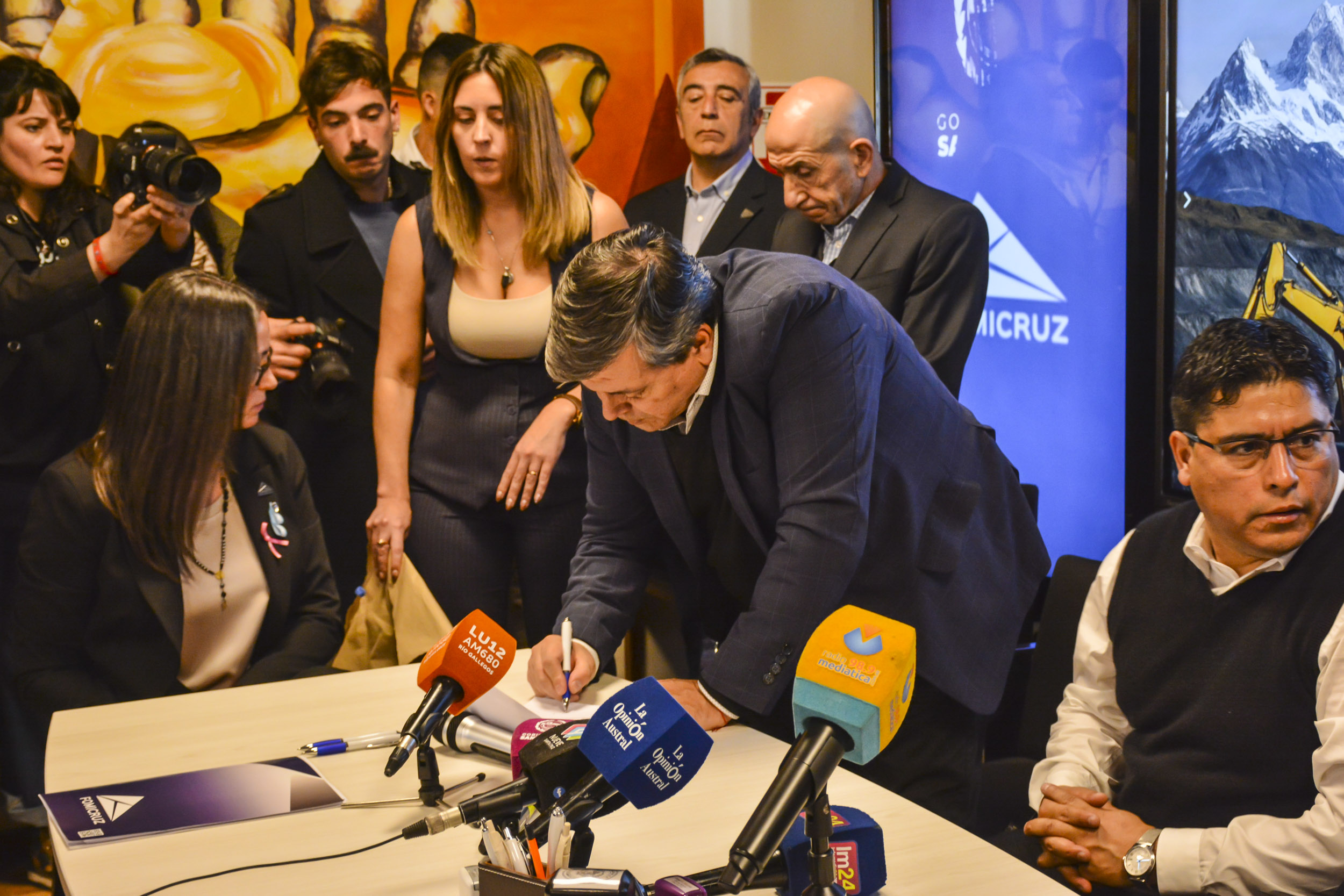 Durante la ceremonia, el mandatario provincial estuvo acompañado por el vicegobernador de la provincia, Fabián Leguizamón; el jefe de Gabinete de Ministros, Daniel Álvarez; el ministro de Energía y Minería, Jaime Álvarez; el presidente de FOMICRUZ S.E., Oscar Vera. También participaron el intendente de Las Heras, Antonio Carambia, los secretarios generales de SIPGER, Rafael Güenchenen y de Petroleros Jerárquicos, José Llugdar, autoridades de cámaras empresarias y funcionarios provinciales