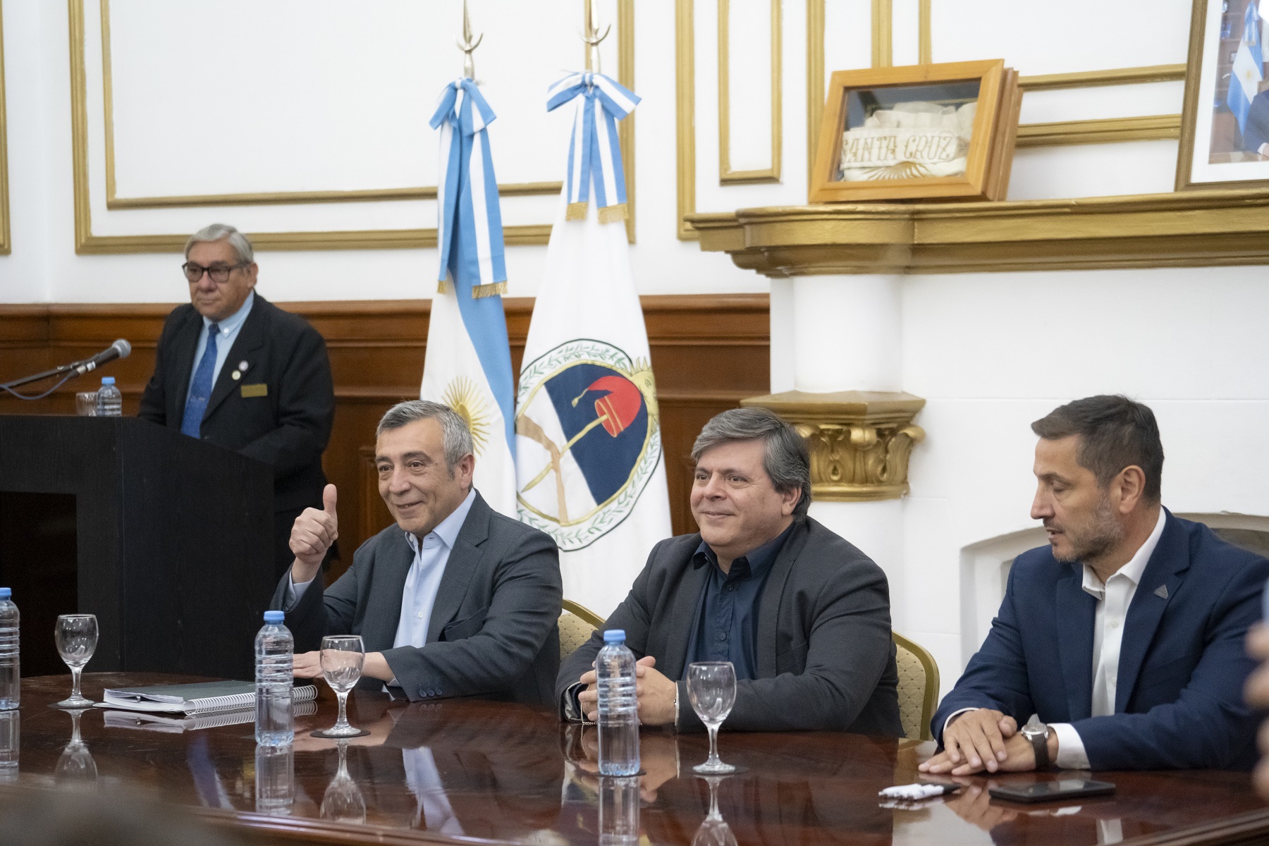 El vicegobernador de la provincia de Santa Cruz, Fabián Leguizamón, presidió el acto en horas de la mañana de este lunes junto al ministro de Energía y Minería, Jaime Álvarez, y el presidente de FOMICRUZ S.E., Oscar Vera, mediante el cual se concretó la firma de contratos para la cesión de diez áreas hidrocarburíferas del Golfo San Jorge, que se realizó en el Salón Blanco de Casa de Gobierno con la presencia de diputados, intendentes, presidentes de fomento, ministros, autoridades provinciales, representantes del sector privado y medios de comunicación.