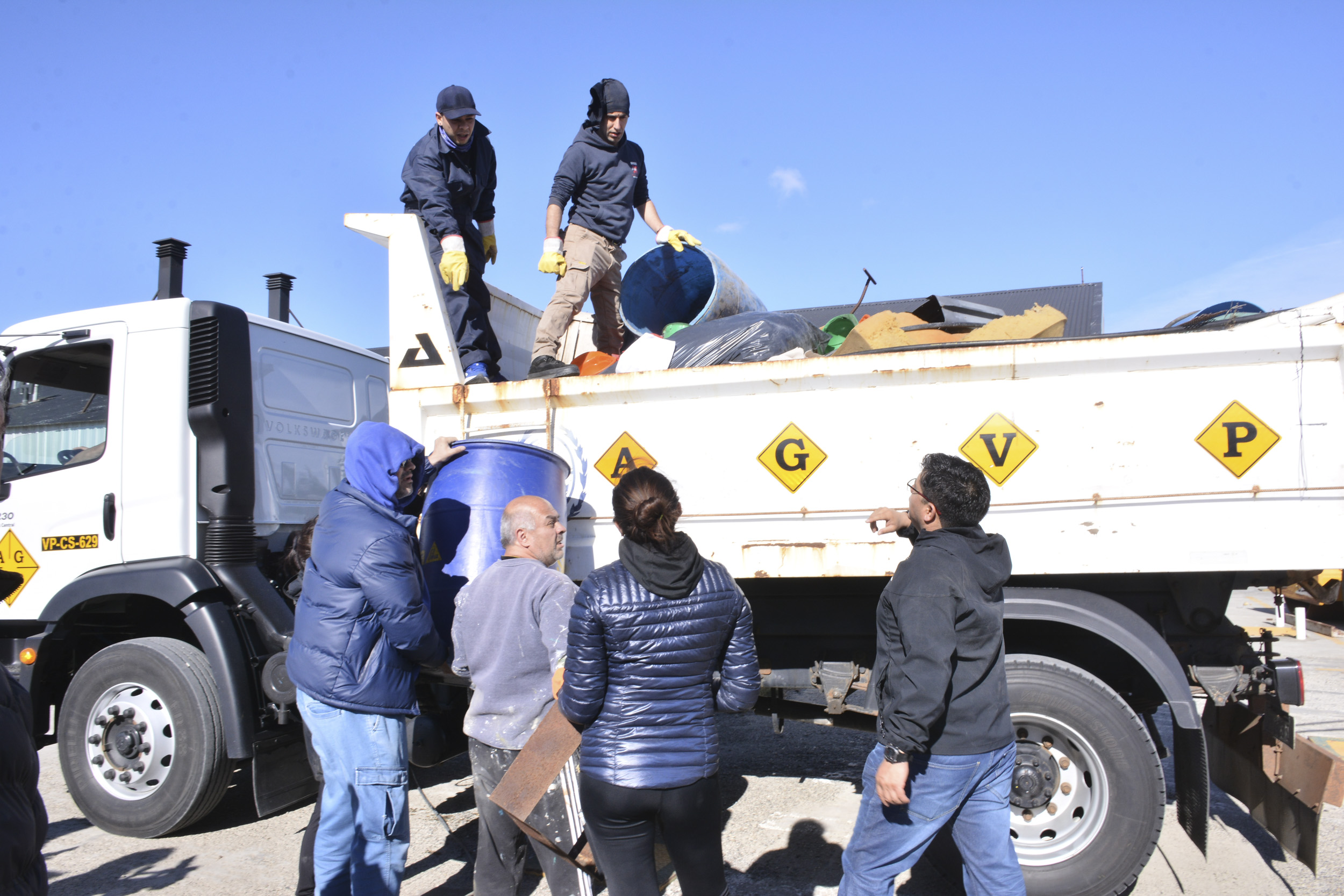 En tal sentido, el presidente de Santa Cruz Puede, Gustavo Sívori precisó que los trabajos comenzaron a primera hora de la mañana y continuarán durante todo el fin de semana. “Tratamos de organizar el trabajo para que sea eficiente y rápido. En dos horas pudimos darle el primer golpe y ya se puede ver todo más ordenado”, señaló. Entre las tareas realizadas se incluyó la separación de materiales como madera, metales, aceites y papeles, con un enfoque puesto en el reciclaje y la correcta disposición de residuos.