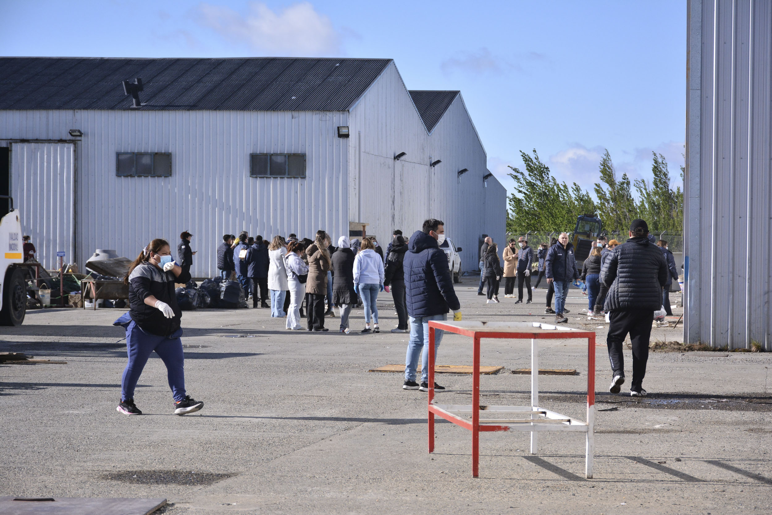 Lo que ayer estaba sin movimiento, hoy mostraba una realidad diferente, los titulares de las carteras ministeriales junto a su personal se apostaron en el ex obrador de Austral Construcciones para comenzar con la una jornada intensiva de clasificación, separación y limpieza en el predio recientemente recuperado, en un trabajo conjunto con cooperativas, trabajadores del sector público y autoridades provinciales.