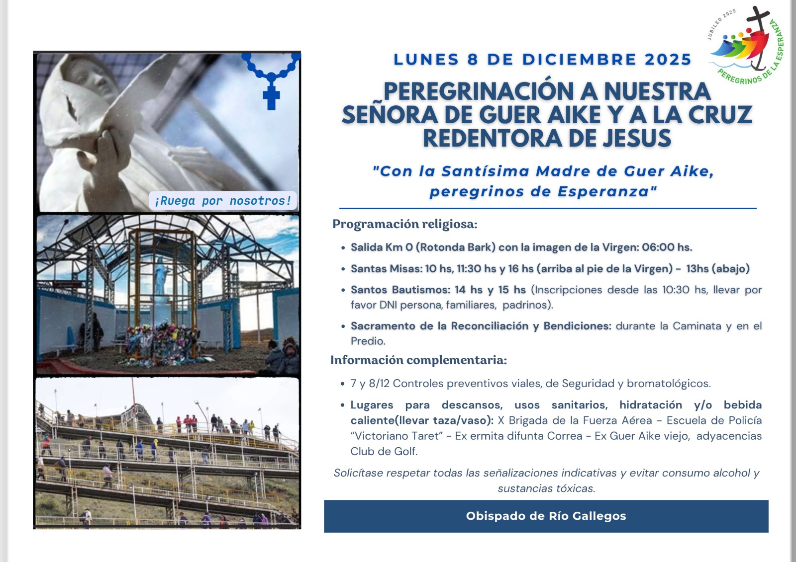 La Secretaría de Estado de Culto participó esta mañana de la conferencia de prensa realizada en el Obispado de Río Gallegos, donde se comunicaron los detalles de la 45° Peregrinación a Nuestra Señora de Guer Aike y a la Cruz Redentora de Jesús, que tendrá lugar el lunes 8 de diciembre.