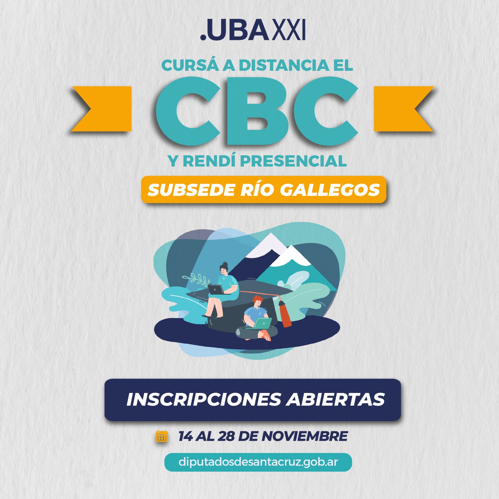 Asimismo, el vicegobernador recordó que hasta el viernes 28/11 se encuentra abierta la pre- inscripción para cursar de forma virtual las materias del próximo cuatrimestre del Ciclo Básico Común (CBC) del programa UBA XXI que ofrece la posibilidad a los jóvenes santacruceños de cursar dichas materias de manera a distancia y rendirlas en la subsede UBA XXI de Río Gallegos que funciona en la Biblioteca Legislativa “28 de noviembre” ubicada en la calle Alcorta N°465 de la capital santacruceña.