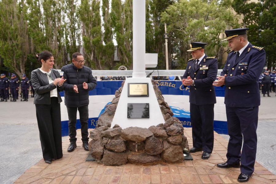 Seguidamente, las autoridades descubrieron dos placas alusivas a esta obra, y al 141° Aniversario de la Policía de Santa Cruz, gesto que simboliza el acompañamiento del Gobierno Provincial hacia la fuerza y sus servidores.
