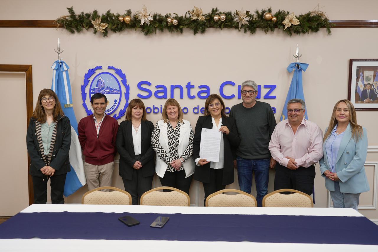 Durante la firma estuvieron presentes el presidente del Instituto de Desarrollo Urbano y Vivienda, Marcelo De la Torre; el vocal por el Ejecutivo, Pablo Álvarez; y la gerenta Técnica, Cintia Banciella. Acompañaron además el presidente de Servicios Públicos Sociedad del Estado, Matías Cortijo; por el Consejo Provincial de Educación, la presidenta Iris Rasgido y la vicepresidenta Esther Pucheta y su equipo técnico; el dueño de la empresa Chimen Aike, Rubén Aranda; el presidente de Distrigas S.A., Juan Carlos Berasaluce; el secretario de Estado, Jorge Caminiti; el diputado por Puerto San Julián, Piero Boffi; y el subsecretario de Interior, Maximiliano Rodríguez, en el marco del trabajo articulado que sostiene cada adjudicación.