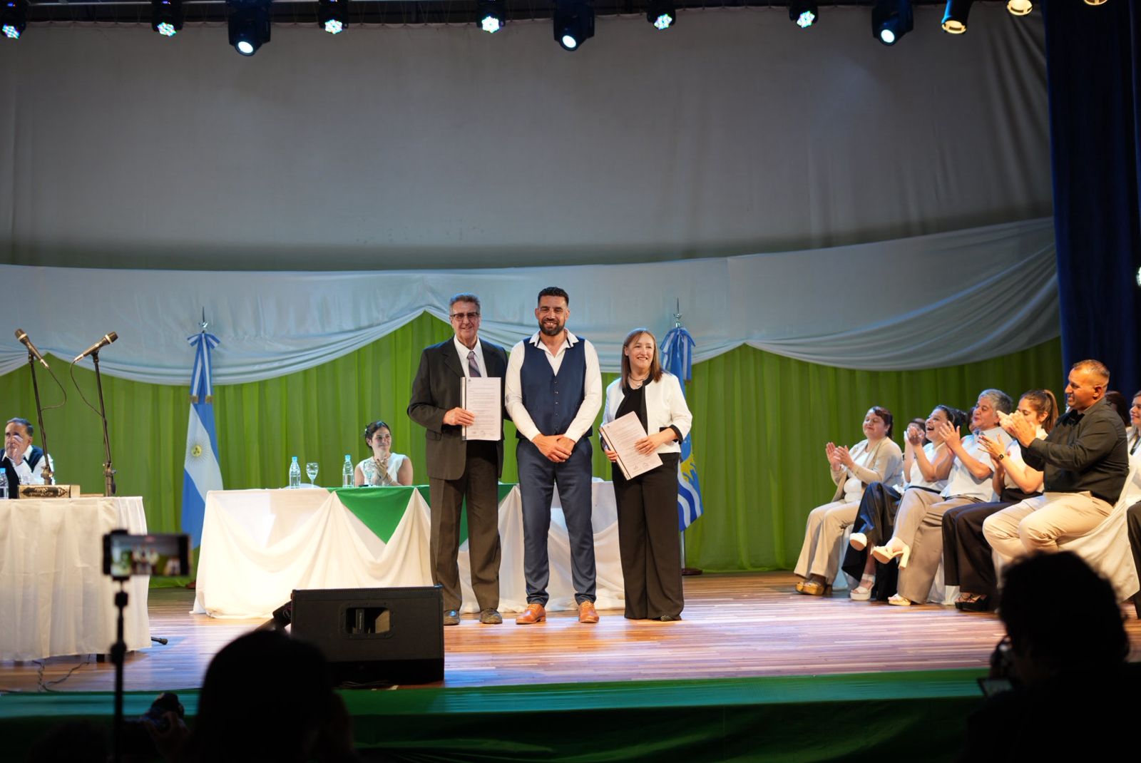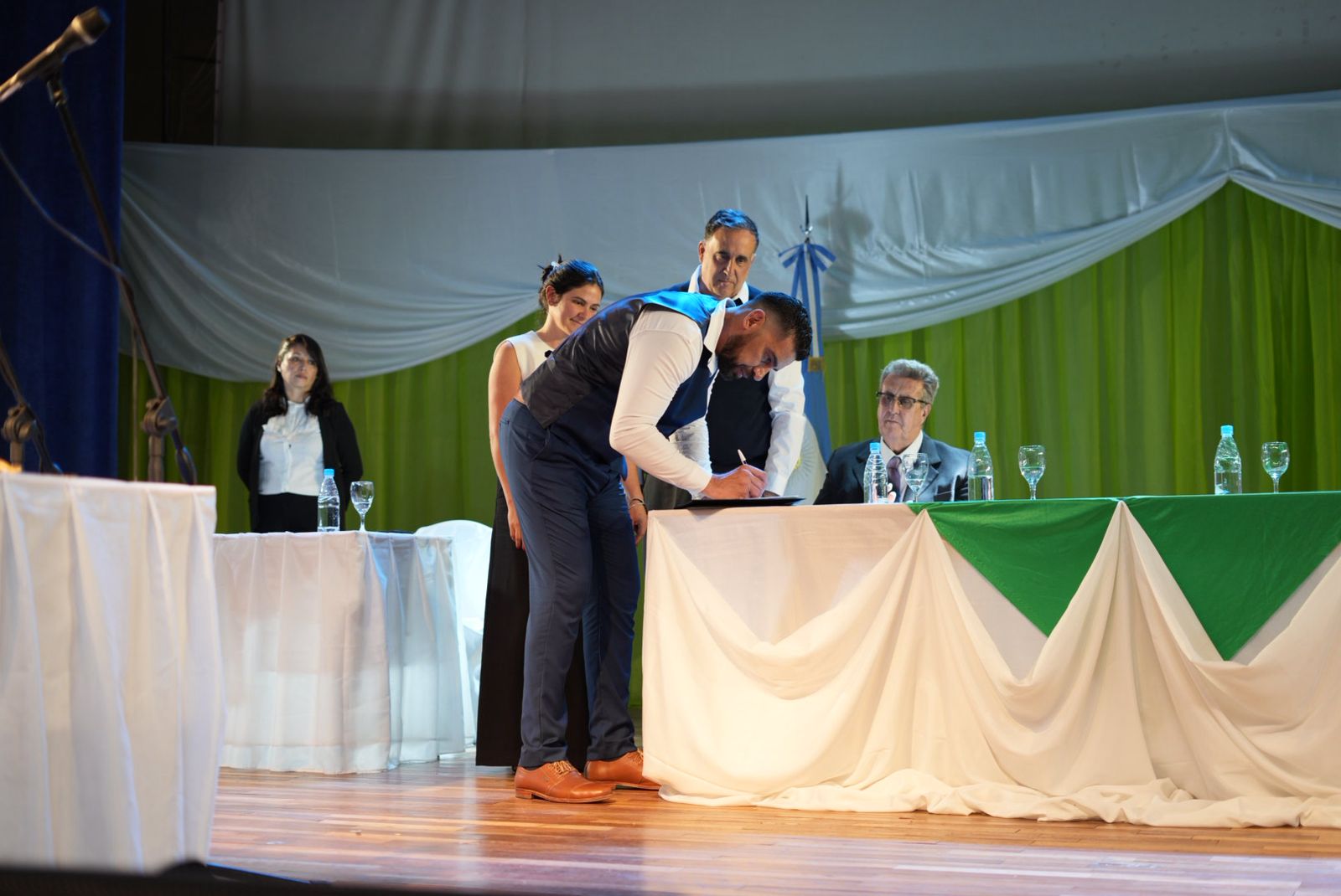 En representación del Poder Ejecutivo, la ministra de Gobierno, Belén Elmiger, tomó juramento al nuevo presidente comunal, formalizando el inicio de su gestión. Acompañaron el acto el ministro de Trabajo, Empleo y Seguridad Social, Ezequiel Verbes, y el representante de Santa Cruz ante el Consejo Federal de Inversiones (CFI), Sebastián Georgion, reafirmando el acompañamiento provincial en este proceso de recambio institucional.