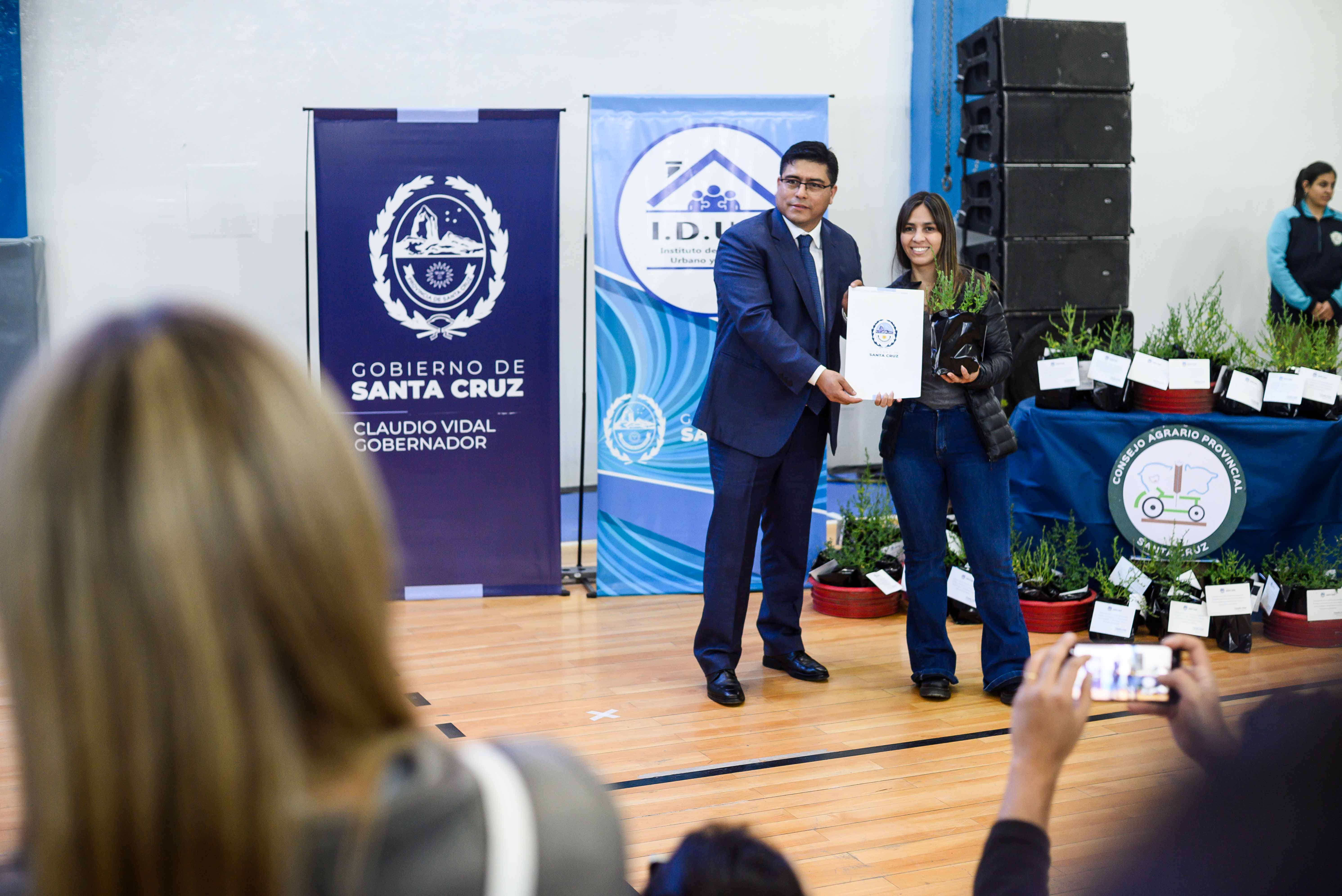 Durante la ceremonia, el mandatario provincial acompañado por el presidente del Instituto de Desarrollo Urbano y Vivienda (IDUV), Marcelo De La Torre, e integrantes del Gabinete, hizo entrega de Actas de Posesión de Terrenos, ubicados en las manzanas 699 a la 708 del Barrio 22 de Septiembre, y 862 a 874 del Barrio Chimen Aike. Vale la pena resaltar que, estas unidades parcelarias marcan el paso inicial para que 50 familias de la ciudad de Río Gallegos puedan concretar el sueño de la vivienda propia.