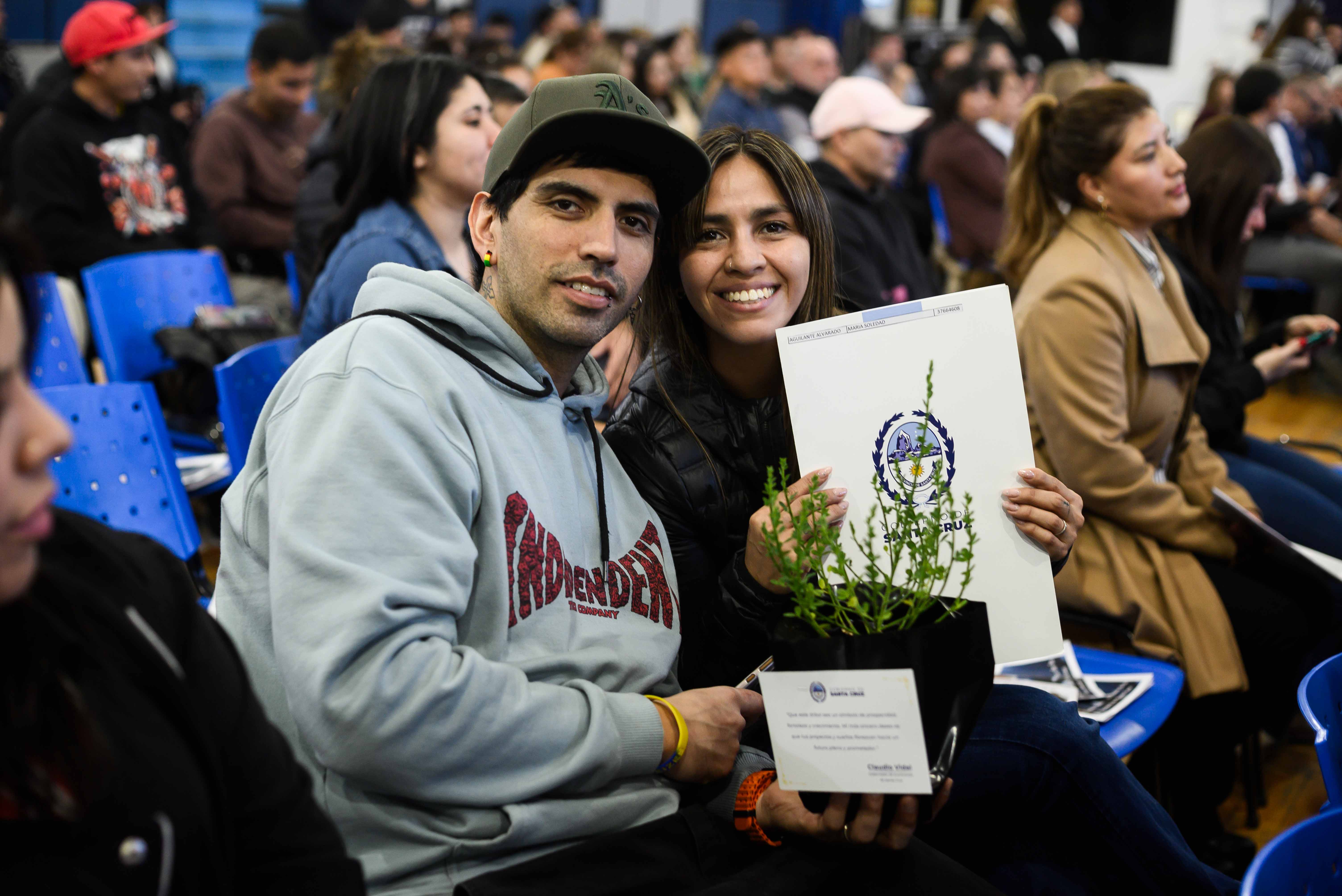 En ese marco, el gobernador Claudio Vidal se dirigió a los presentes, indicando en primera instancia que la decisión que se tomó en el día de hoy es muy importante. “Vivimos en la segunda provincia en extensión más grande del país, pero sin embargo, a pesar de eso, miles de familias no tienen un terreno propio en donde puedan construir sus sueños, en donde puedan construir su vivienda. Es por eso que este gobierno tiene la firme decisión política de hacer lo que realmente tenemos que hacer que es, entregar tierras a los santacruceños nacidos y criados o que tomaron por opción vivir en esta provincia”, expresó.