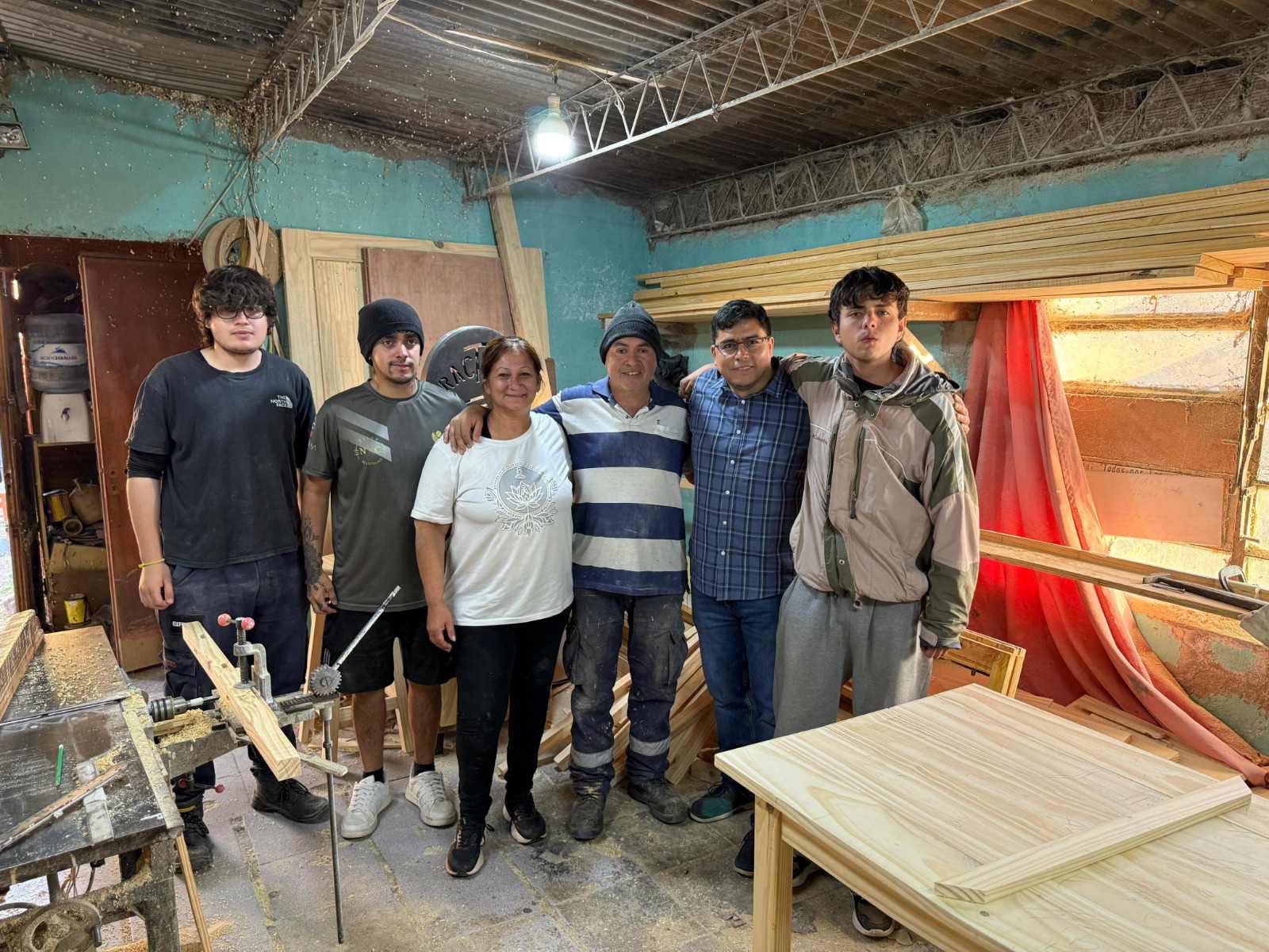 Asimismo, compartió un encuentro con jóvenes emprendedores que desarrollan una carpintería artesanal, generando empleo genuino y fortaleciendo el entramado productivo de la localidad.