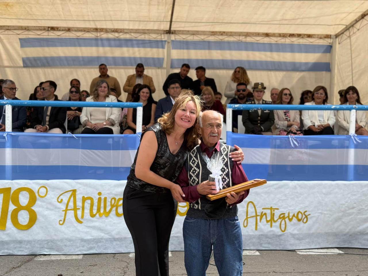 Durante el acto también se realizaron distinciones a pobladores pioneros, con un reconocimiento especial a Oscar “Charo” Sandoval, por su trayectoria y compromiso con la comunidad. El gobernador Claudio Vidal le hizo entrega de un presente en agradecimiento a su invaluable aporte al desarrollo y crecimiento de Los Antiguos, tanto desde su rol institucional como por su permanente vocación de servicio hacia los vecinos.