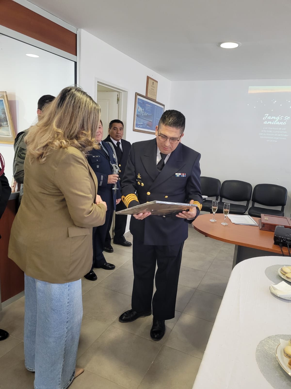 En ese contexto, la funcionaria provincial, destacó que hoy se hizo presente en tan importante acto en representación del Gobierno Provincial, a los efectos de expresar el más profundo reconocimiento al jefe de Departamento Naval Santa Cruz y Apostadero Naval Rio Gallegos, Humberto Javier Barriga, quien culminó hoy una destacada trayectoria al servicio de la Patria. Asimismo, remarcó que su carrera ha sido ejemplo de vocación, liderazgo y compromiso, valores que trascienden el ámbito militar y fortalecen el trabajo conjunto entre las instituciones del Estado en favor del bienestar y la seguridad de nuestra comunidad.