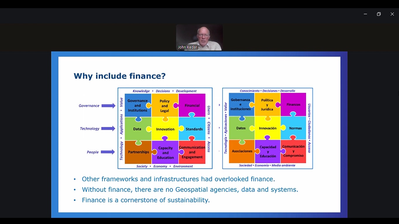 El encuentro abordó la sostenibilidad financiera y los mecanismos de inversión aplicados a la gestión de la información geoespacial, bajo los lineamientos del Marco Integrado de Información Geoespacial de las Naciones Unidas (UN-IGIF), una guía global para fortalecer los sistemas de datos geoespaciales y su aporte al desarrollo sostenible.