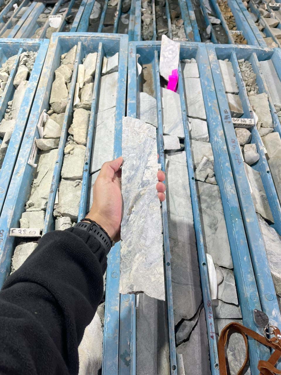 Durante la recorrida también se inspeccionaron las instalaciones del campamento operativo y la loguera, donde se encontraban almacenados y ordenados los testigos de corona provenientes de las perforaciones realizadas, verificándose las condiciones de registro y preservación del material geológico obtenido.