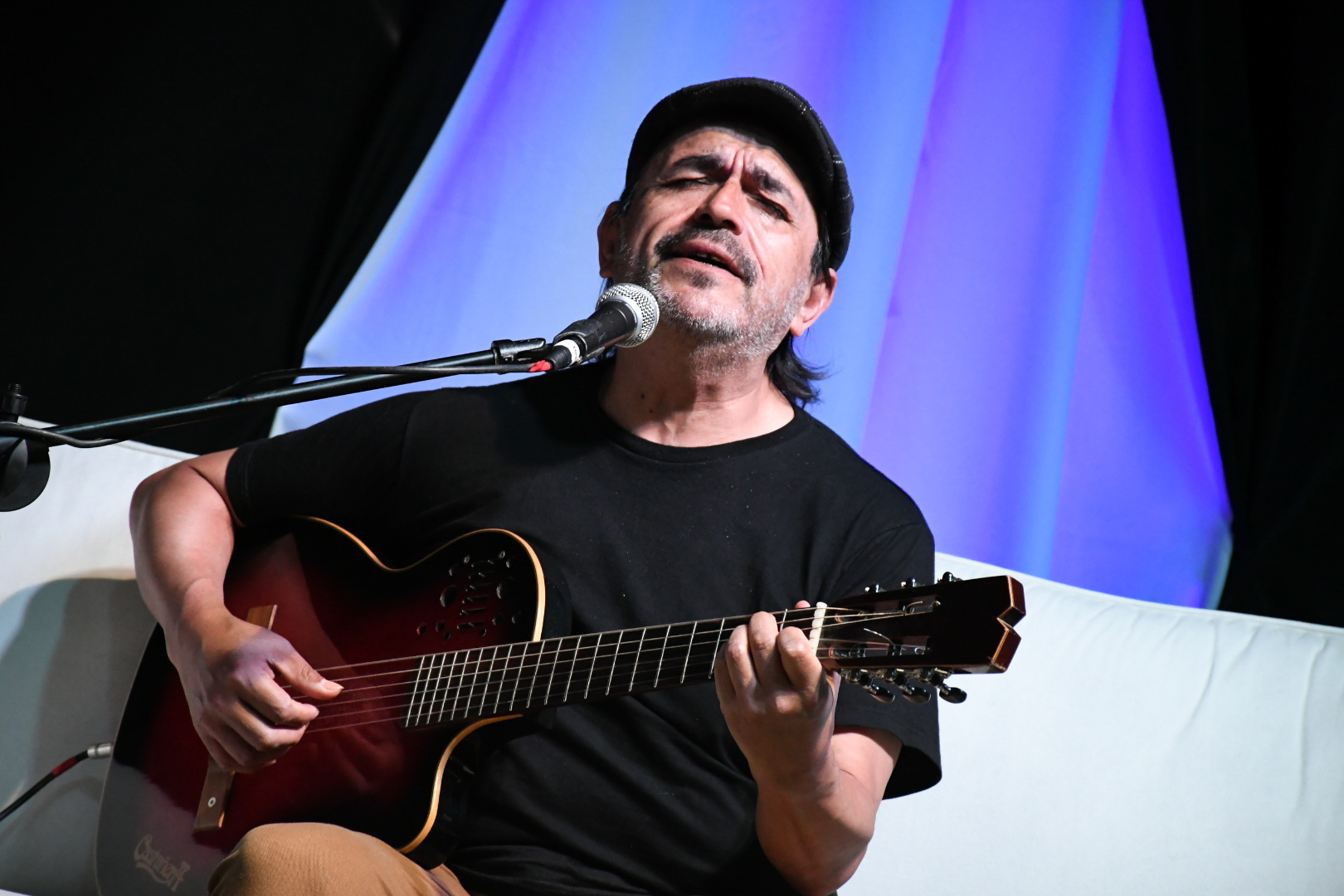 Finalmente, la música tomó el escenario con el ciclo Voces en Escena. En primer término, Eduardo Guajardo, referente indiscutido del canto patagónico, se presentó junto a Mario Novack en un formato íntimo que intercaló canciones emblemáticas con relatos de su trayectoria.