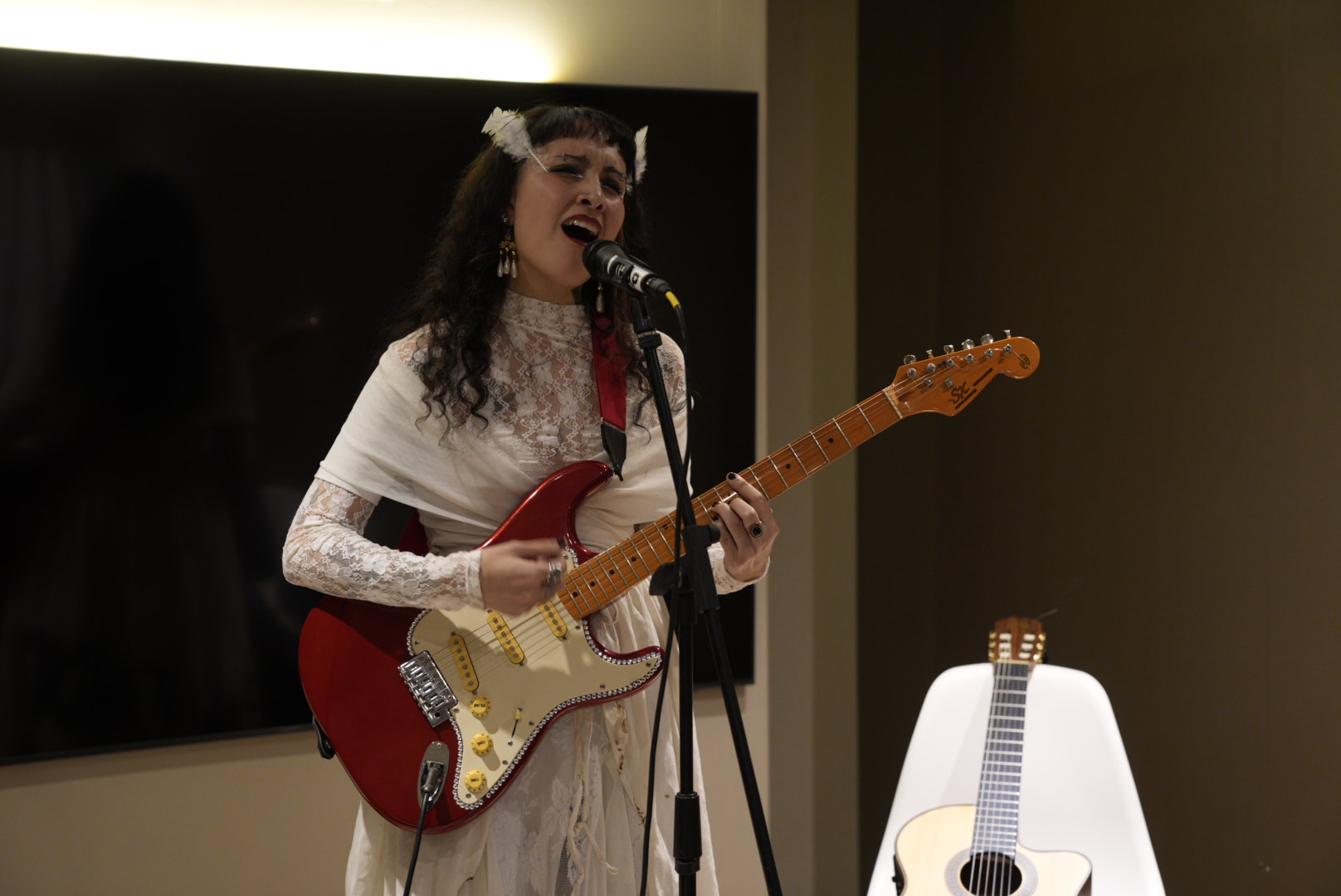 La jornada continuó a las 20:00 con la propuesta de Casandra Molinari, quien presentó un cruce entre música y poesía en formato semiacústico, con guitarras, voces y teclados que dialogaron con sonoridades propias de la Patagonia. El eje de la presentación fue el poema A Río Gallegos, que se entrelazó con música y recitados, generando una experiencia sensorial que puso en valor las narrativas identitarias de la ciudad capital y del mundo sureño. La obra de Molinari se caracteriza por su mixtura artística y por la búsqueda de un lenguaje que atraviesa lo poético y lo musical, reafirmando la identidad austral desde una mirada contemporánea.