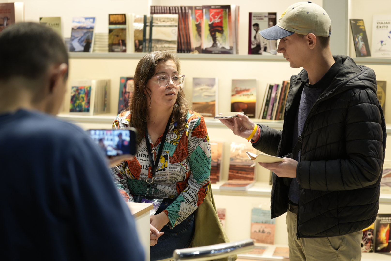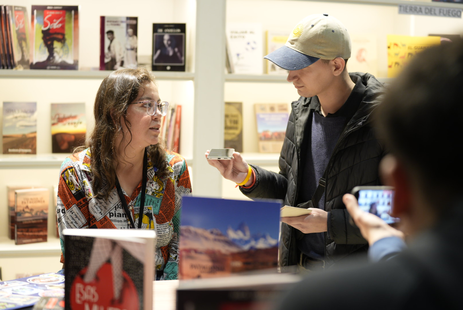 La artista Casandra Molinari expresó la emoción de presentarse por primera vez en la Feria Internacional del Libro de Buenos Aires. “Es la primera vez que vengo a la Feria del Libro en La Rural, es gigante, hermoso, me sentí bastante acompañada. Hubo mucha gente de afuera, que no era del stand de Santa Cruz, que vino, se quedó, vio y disfrutó. Es compartir el arte sureño y que lo conozca el resto de las provincias”, señaló.
