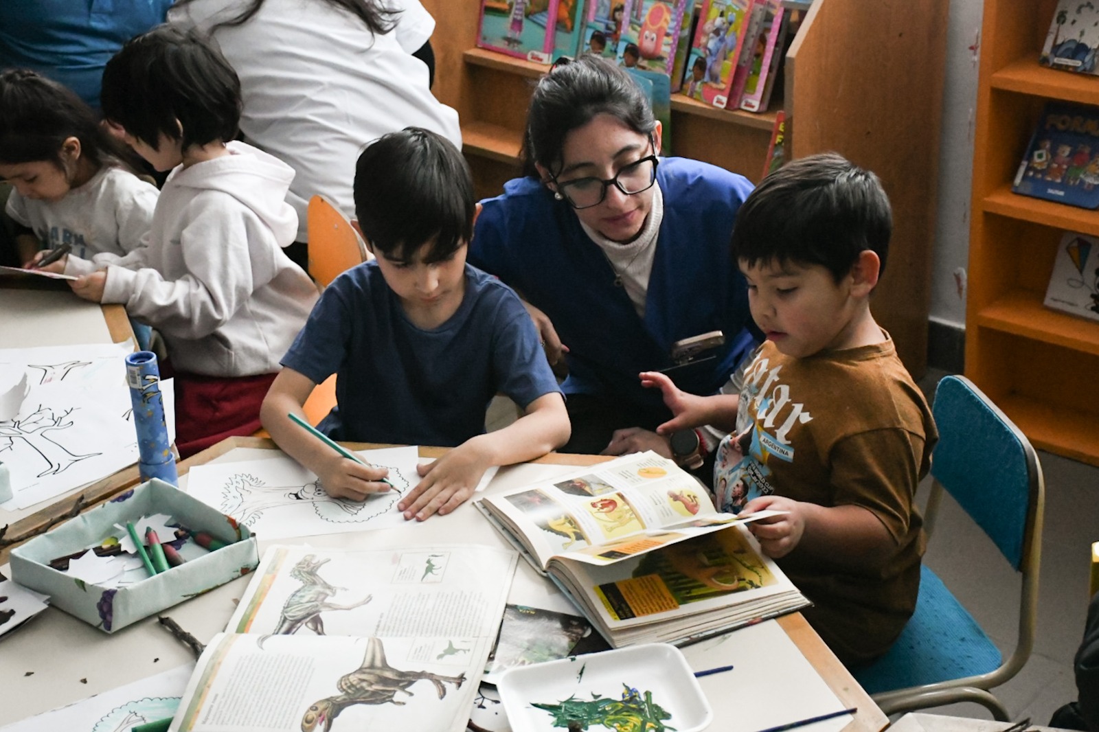 El encuentro incluyó un stand de libros especializados en autismo, asesoramiento y orientación para familias, talleres de arte y yoga infantil, además de cinco estaciones sensoriales coordinadas por acompañantes terapéuticos, docentes de educación especial y estudiantes de la UNPA. La profesora Victoria Batallán estuvo a cargo de las actividades creativas que estimularon los sentidos y el vínculo familiar.
