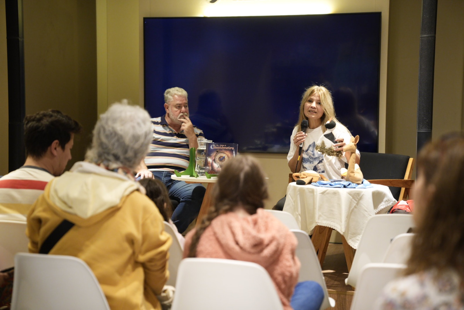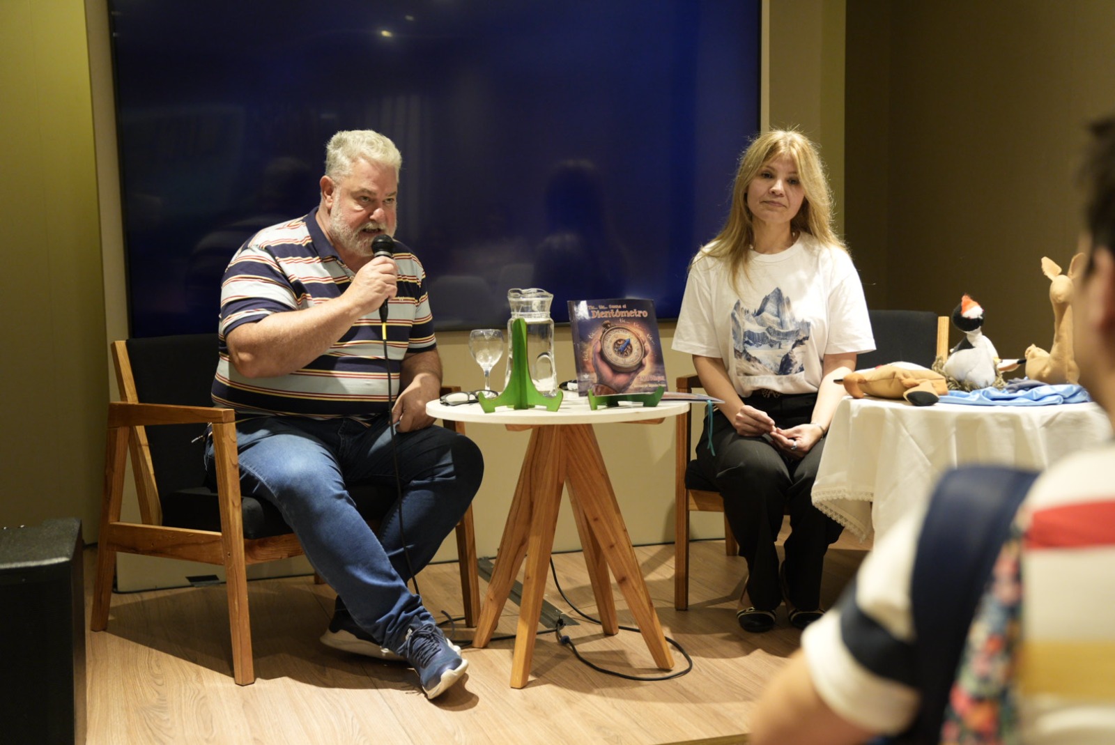 La actividad comenzó a las 16, con la presentación de El gran chapuzón de Pilik, de la escritora Mirta Vázquez - acompañada por Luis Pellanda- destinada a la infancia. Al respecto, explicó que la dinámica dependió del público presente. “La idea de la presentación fue, de acuerdo al público que tuviéramos, si había participación de niños los íbamos a invitar y tener en cuenta. En el caso de que no hubiera muchos chicos, hice una presentación más formal para comentar el proceso de escritura, cómo fue la elección de las imágenes y la narrativa”, señaló. Vázquez subrayó además que se trató de su primera experiencia en una feria internacional: “Es la primera vez, así que estuve con todas las expectativas. El libro ya estuvo presentado en varias localidades de Santa Cruz, pero en Buenos Aires fue la primera vez que pude asistir y estar para presentarlo”.