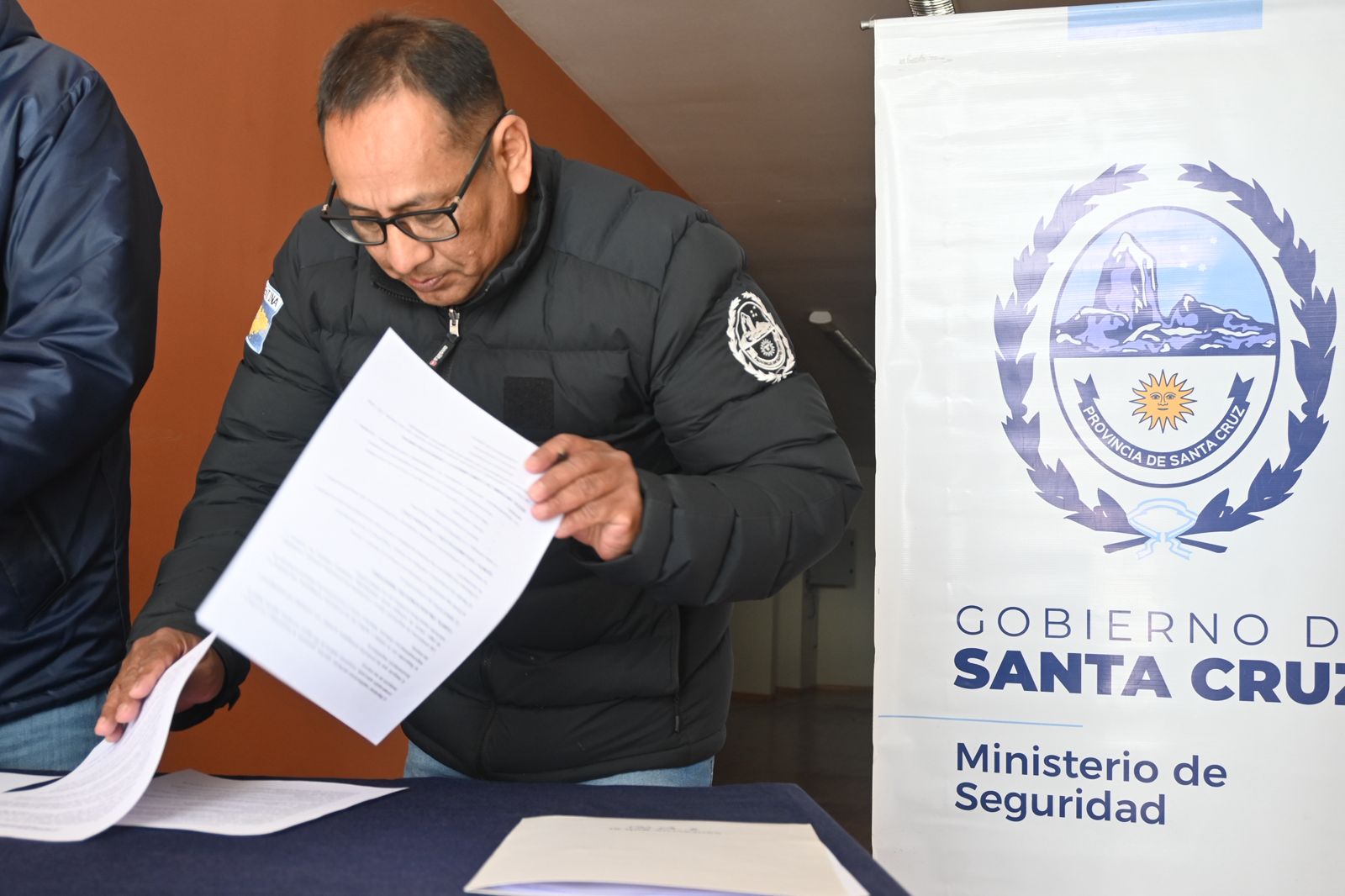La rúbrica fue realizada por el ministro de Seguridad, Pedro Prodromos, y el presidente de la empresa provincial, Gustavo Sivori, en el predio que posee la misma –ex obrador de Austral Construcciones-, donde la cartera ministerial también tendrá sus oficinas.