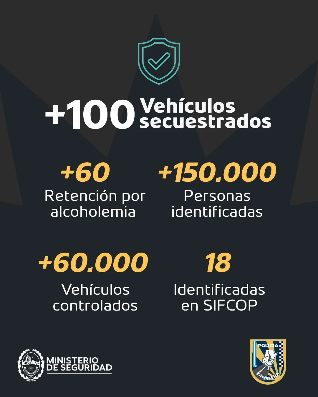 Durante el mes de enero, los operativos arrojaron resultados significativos. En total, se controlaron 61.288 vehículos y 154.126 personas. Como consecuencia de estos controles, se labraron 198 actas de infracción, se procedió al secuestro de 101 automóviles y se retiró de la circulación a 66 conductores que presentaban alcoholemia positiva, reafirmando la política provincial de Alcohol Cero al volante.